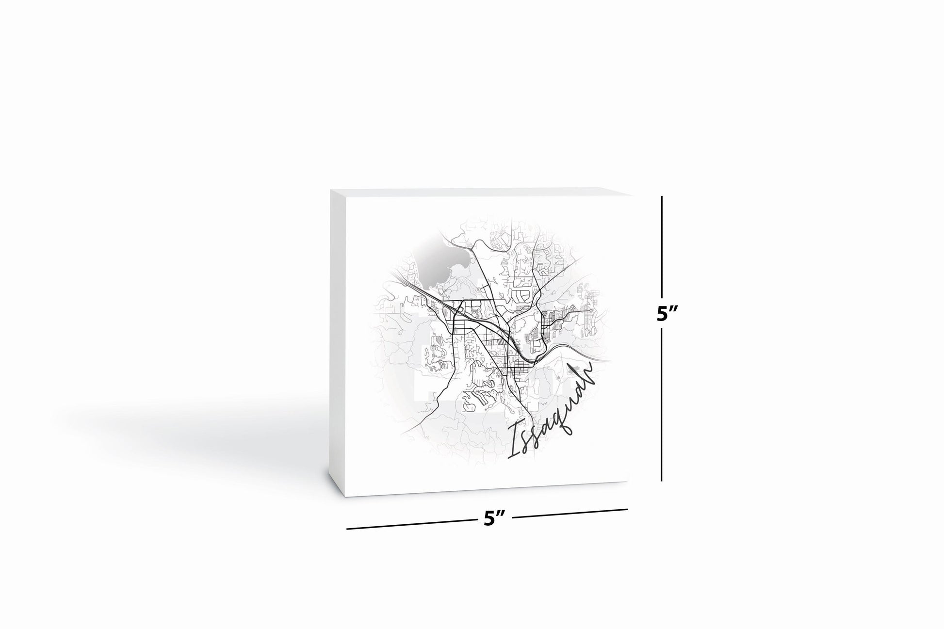 Minimalistic B&W Washington Issaquah Circle Map | Wood Block | Eaches | Min 4