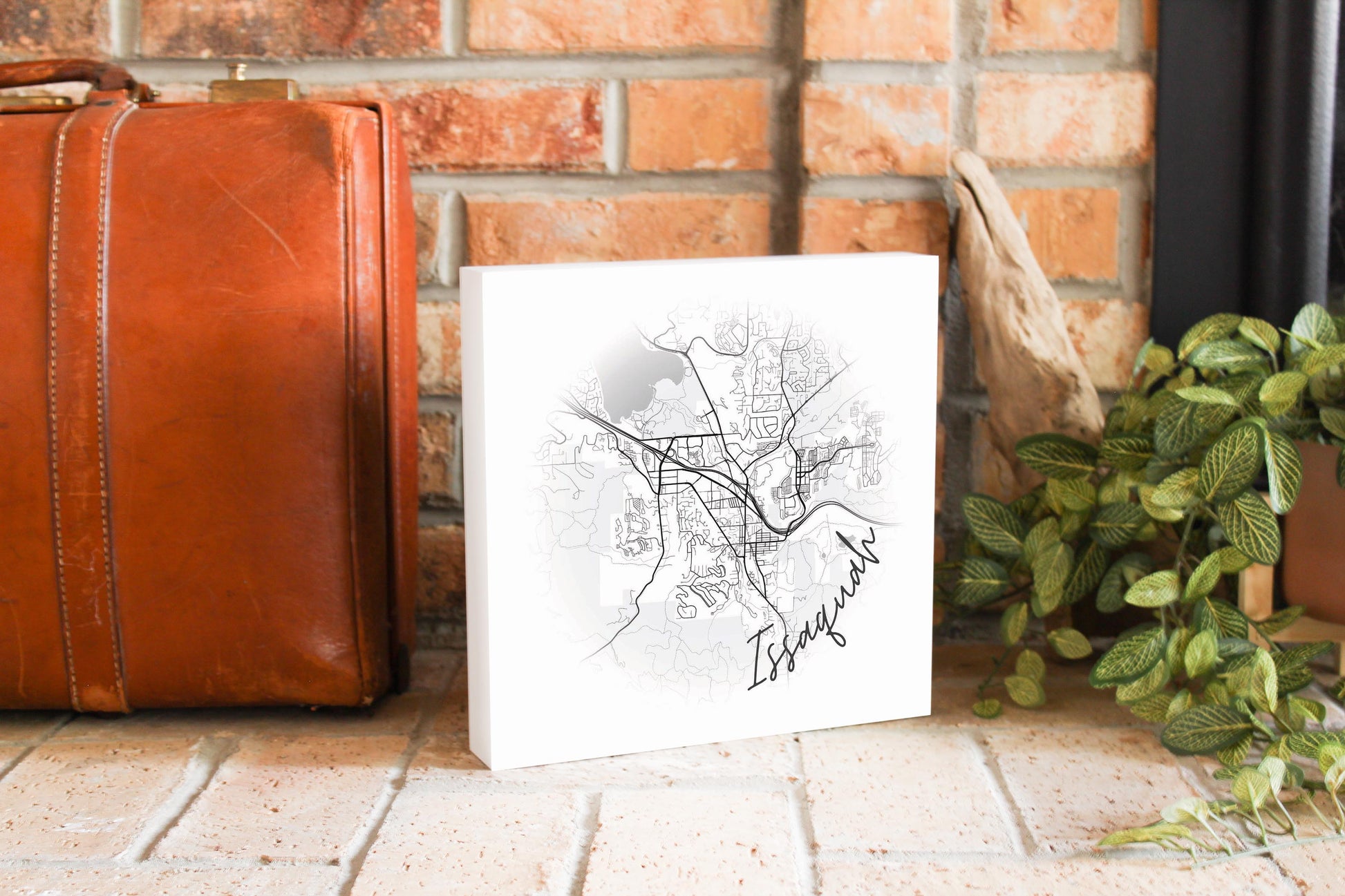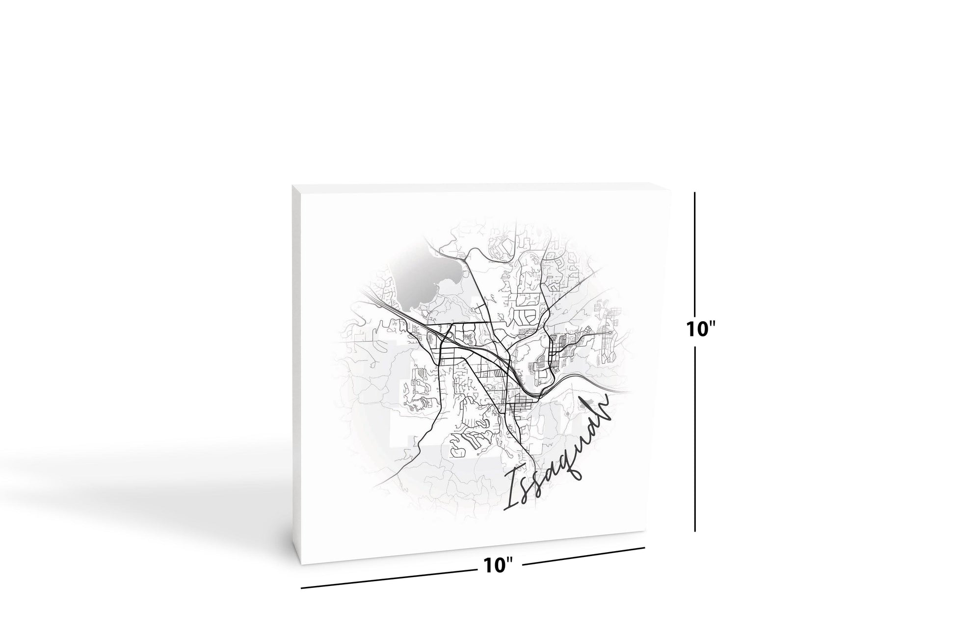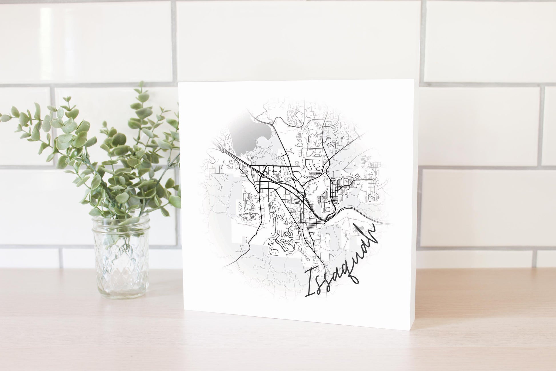Minimalistic B&W Washington Issaquah Circle Map | Wood Block | Eaches | Min 2
