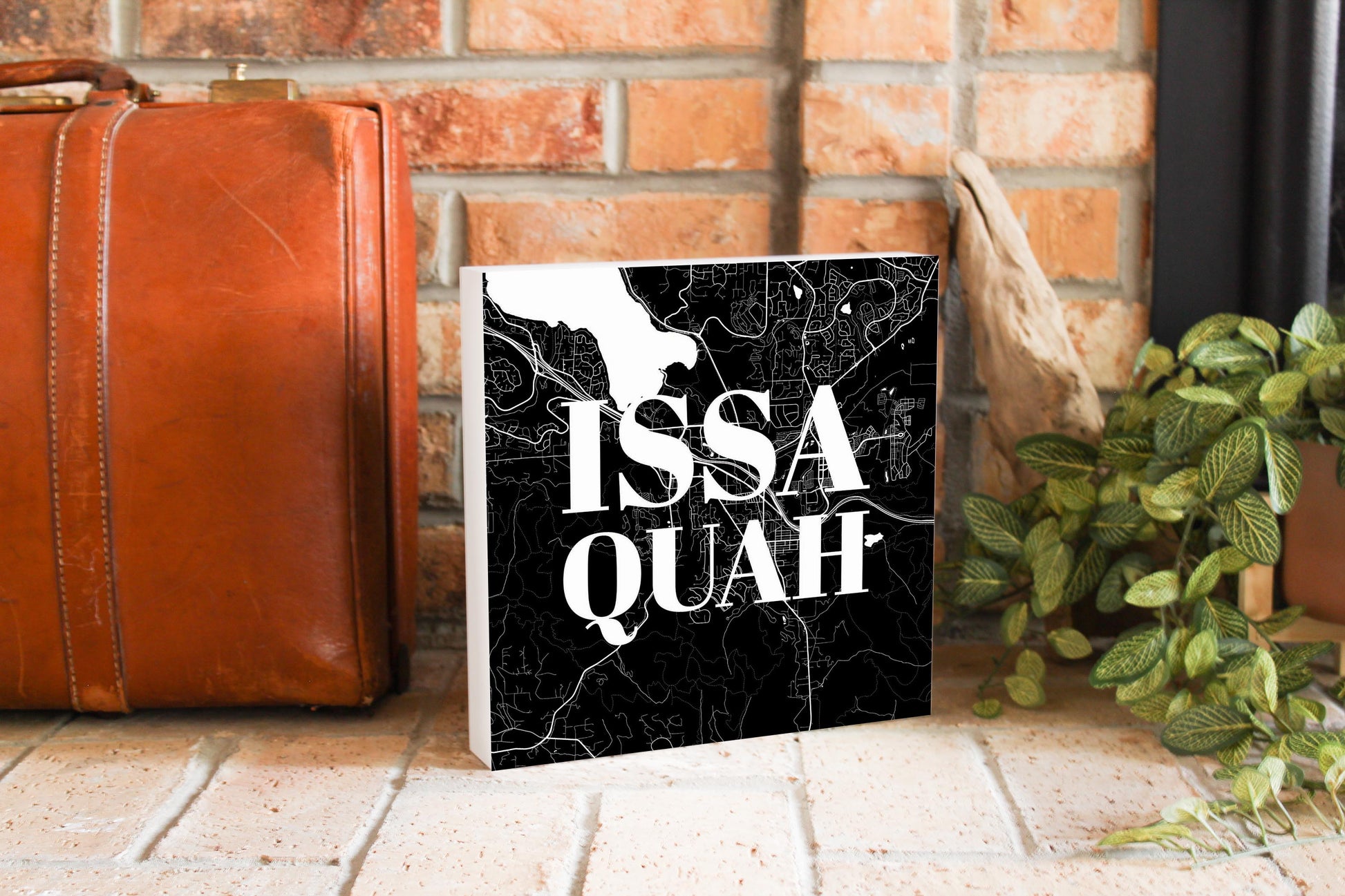 Minimalistic B&W Washington Issaquah Map | Wood Block | Eaches | Min 2
