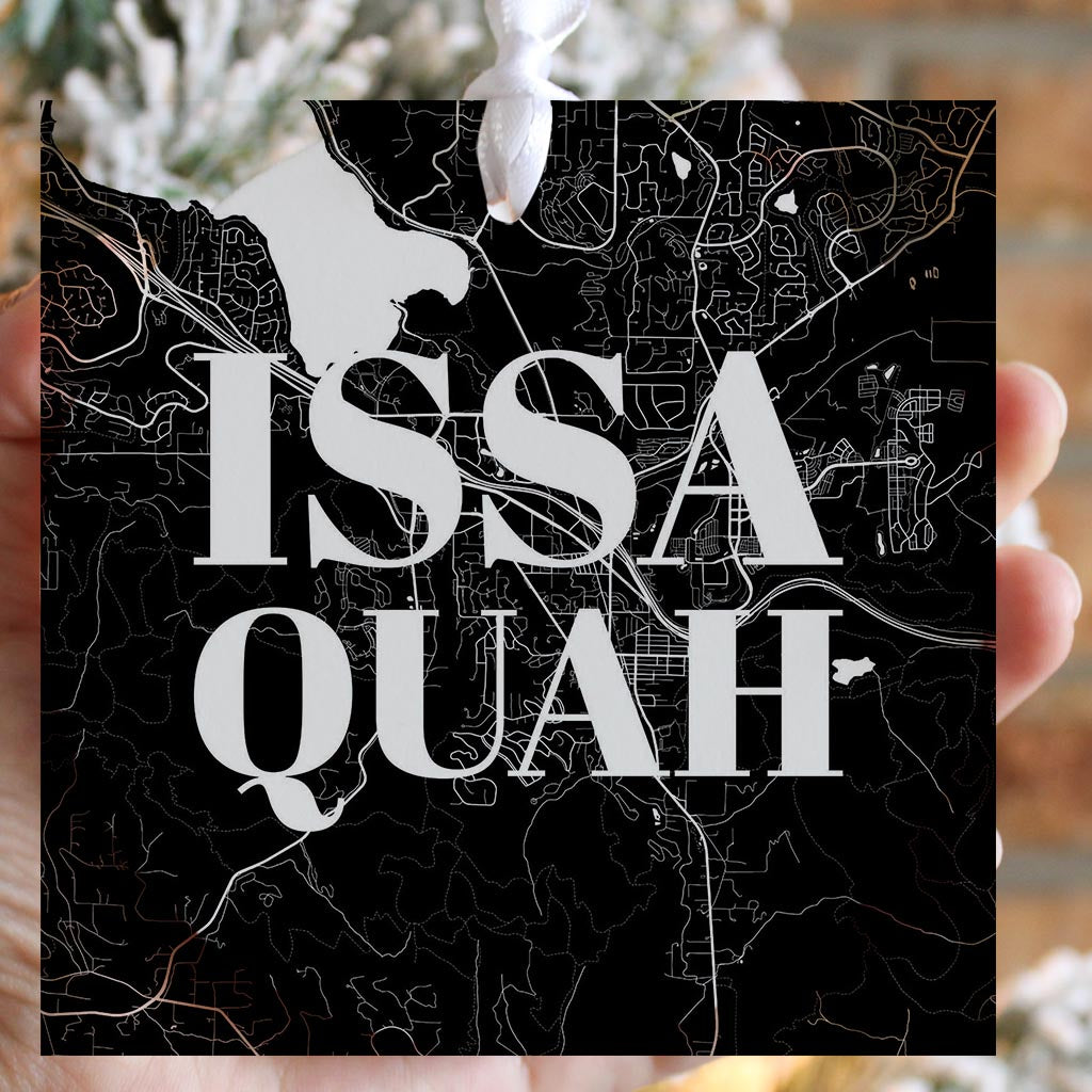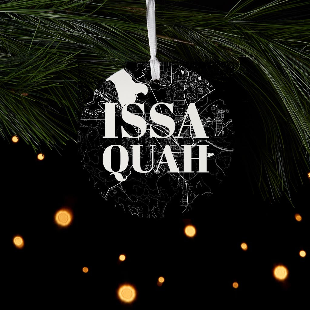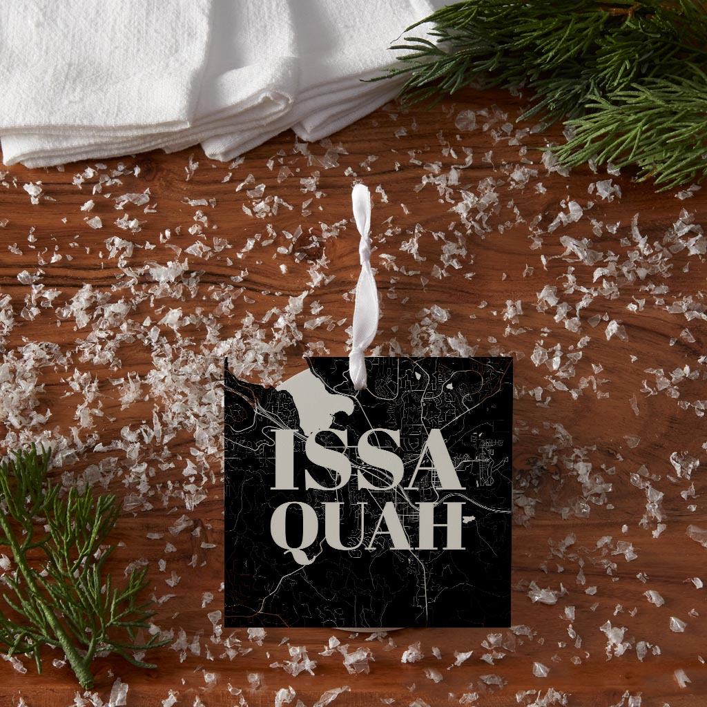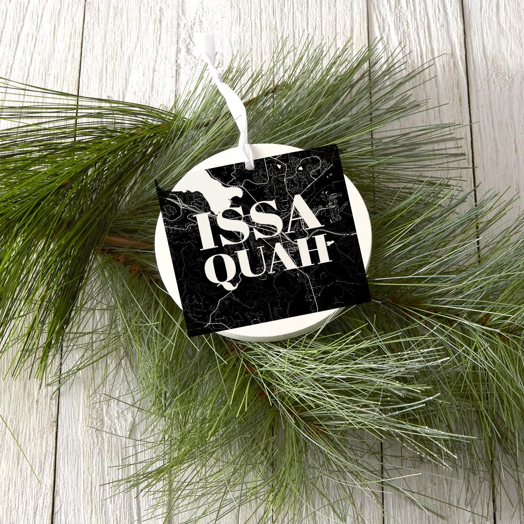 Minimalistic B&W Washington Issaquah Map | Wood Ornament | Eaches | Min 6