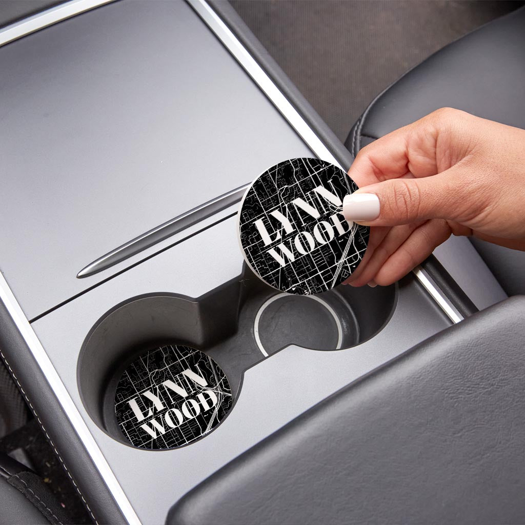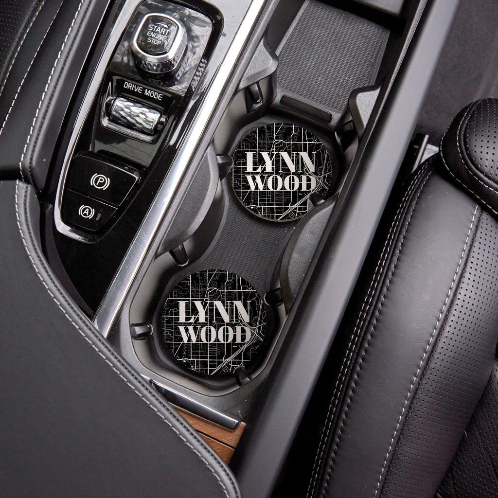 Minimalistic B&W Washington Lynnwood Map | Absorbent Car Coasters | Set of 2 | Min 4