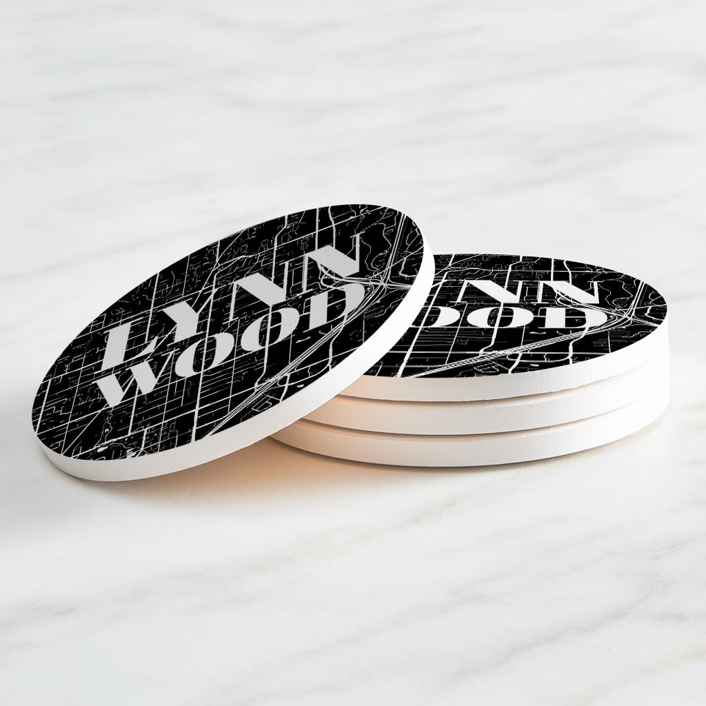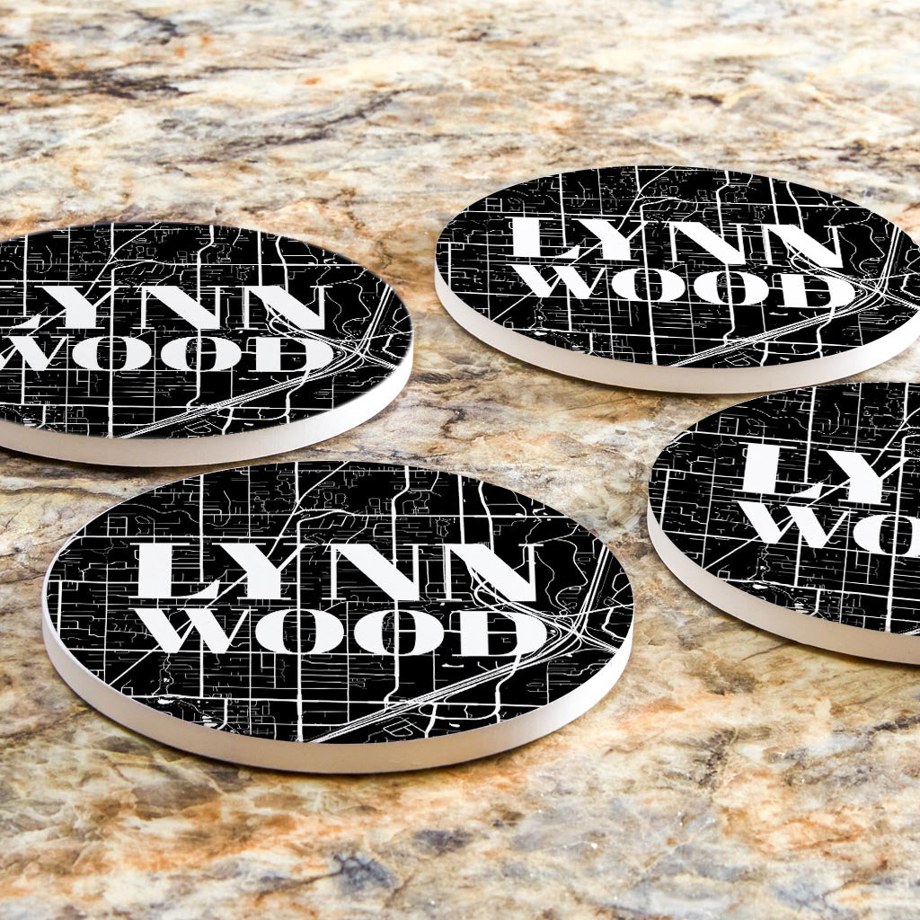 Minimalistic B&W Washington Lynnwood Map | Absorbent Coasters | Set of 4 | Min 2