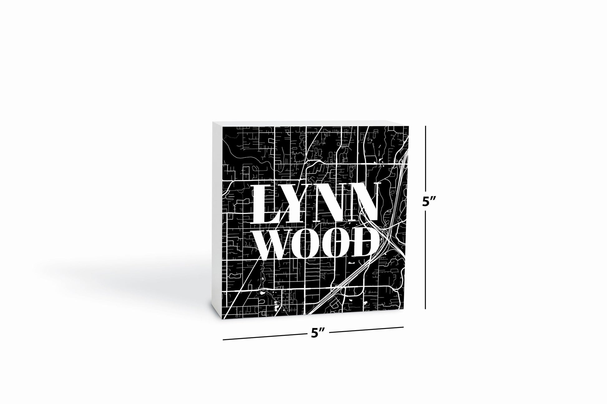 Minimalistic B&W Washington Lynnwood Map | Wood Block | Eaches | Min 4