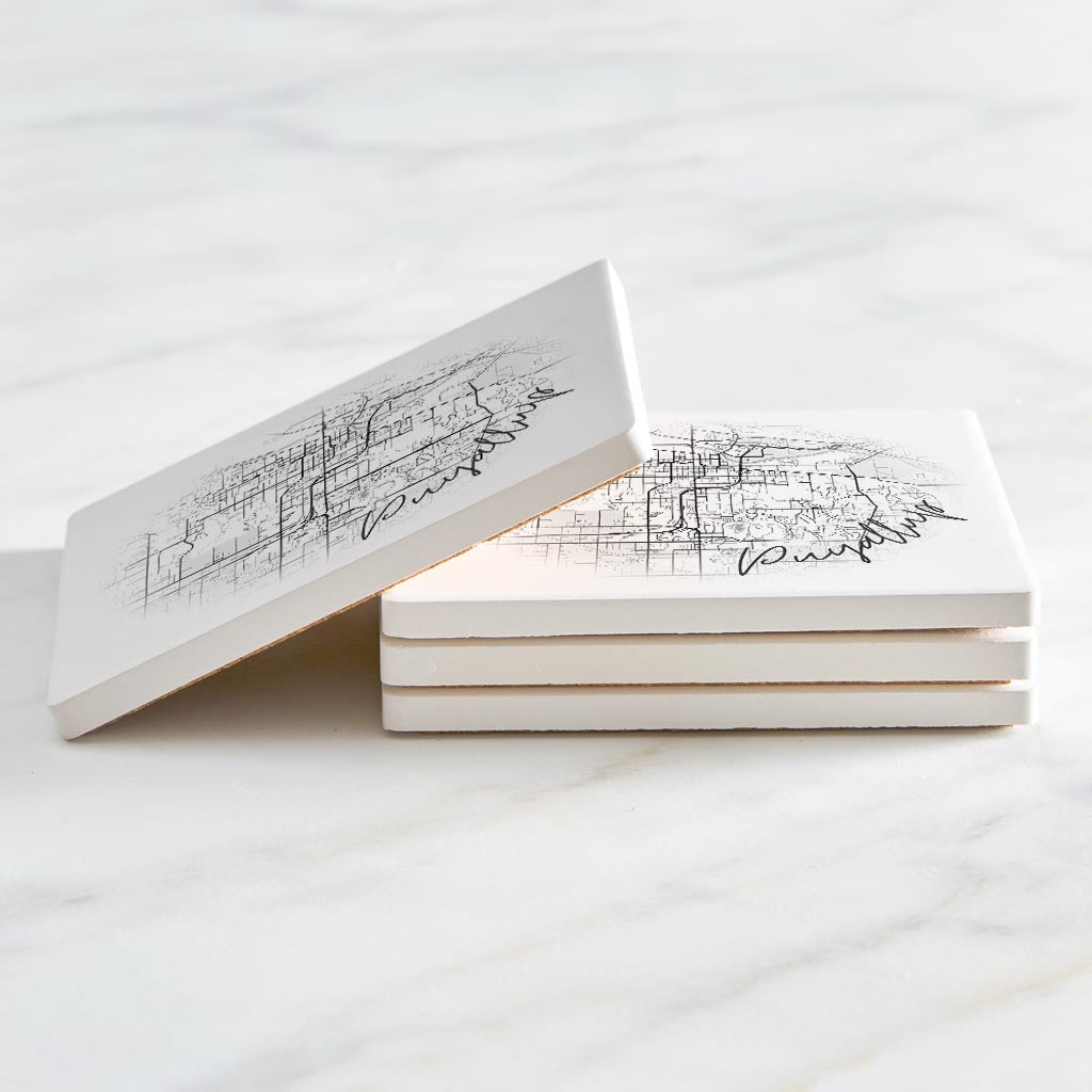 Minimalistic B&W Washington Puyallup Circle Map| Absorbent Coasters | Set of 4 | Min 2