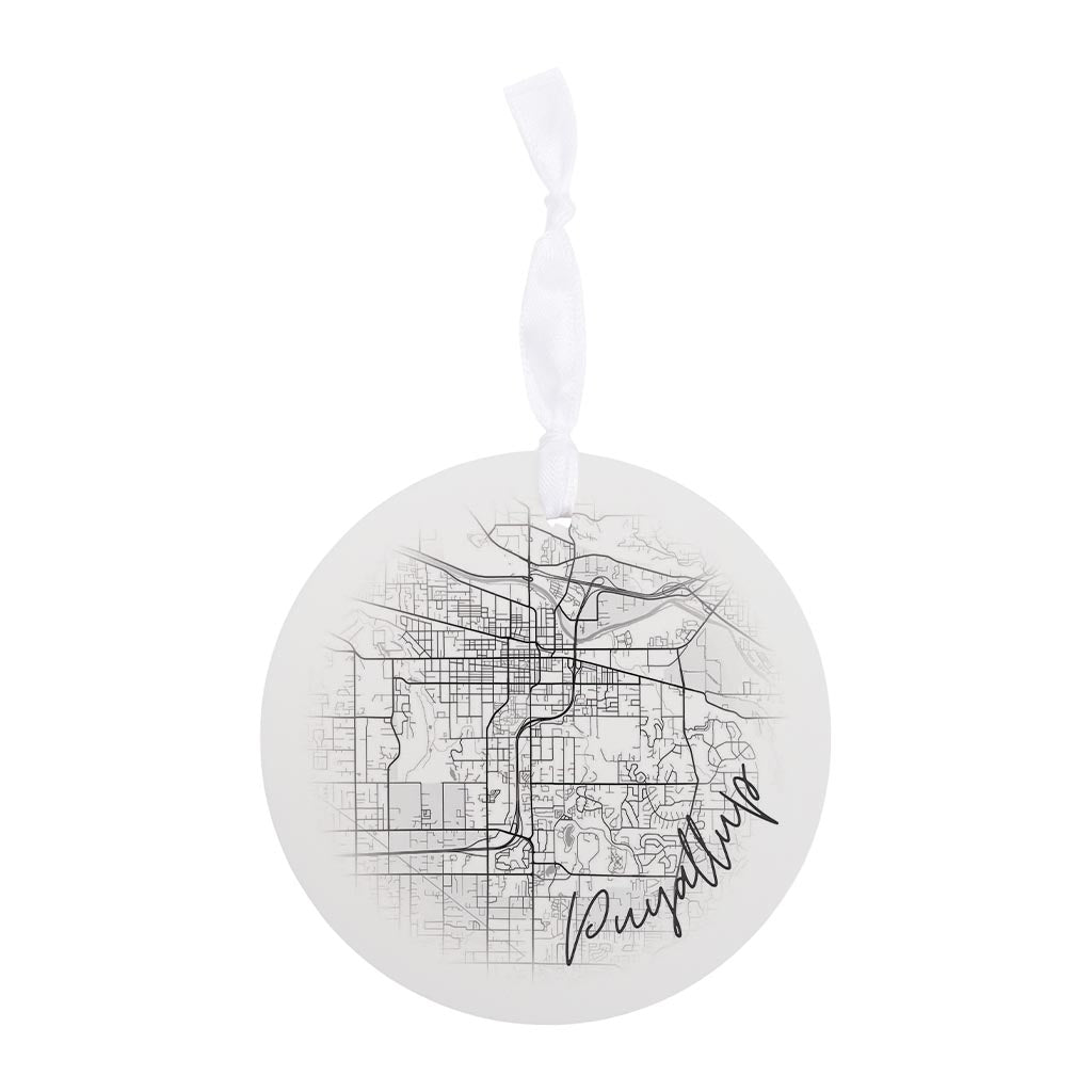 Minimalistic B&W Washington Puyallup Circle Map | Wood Ornament | Eaches | Min 6