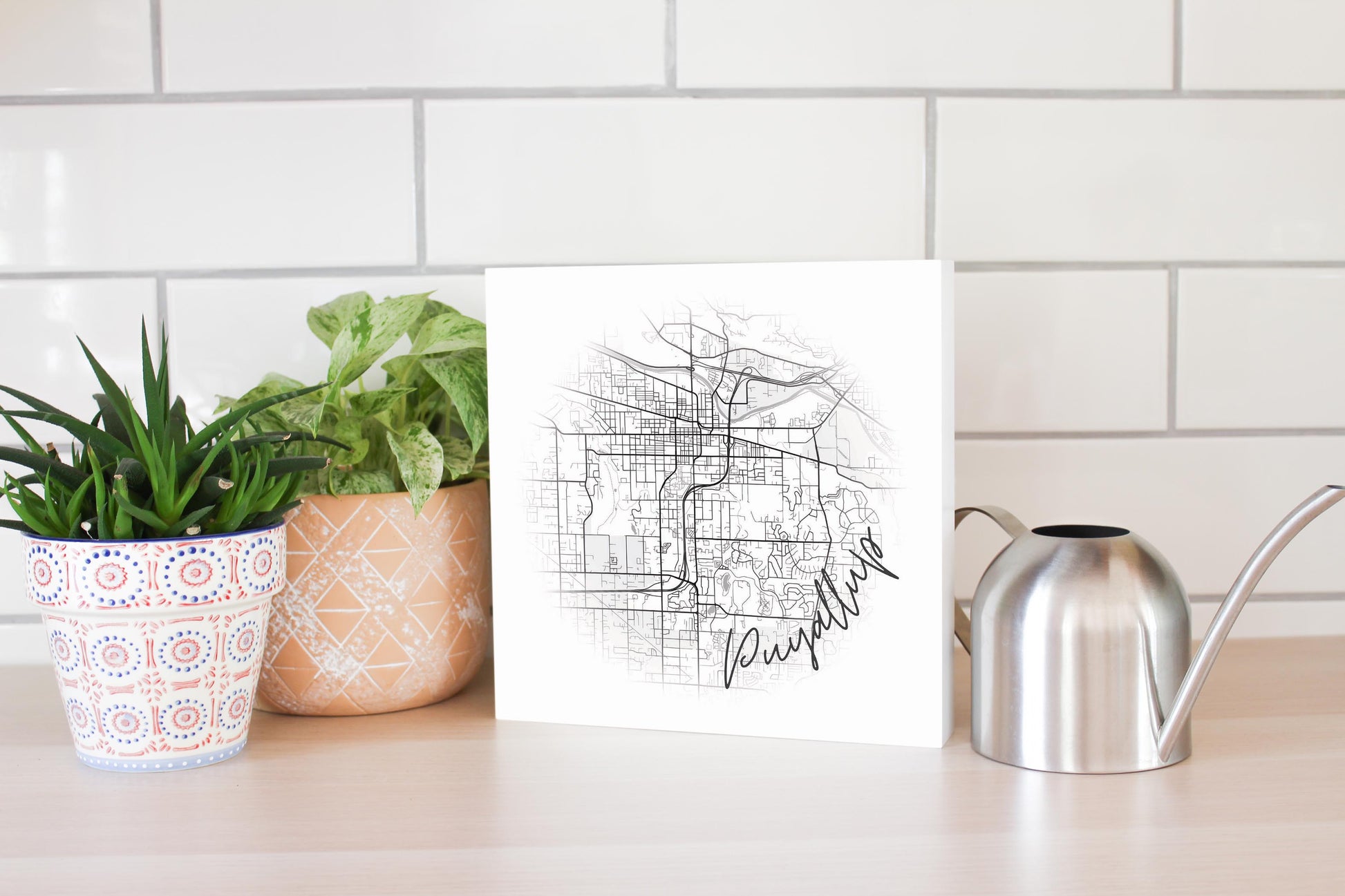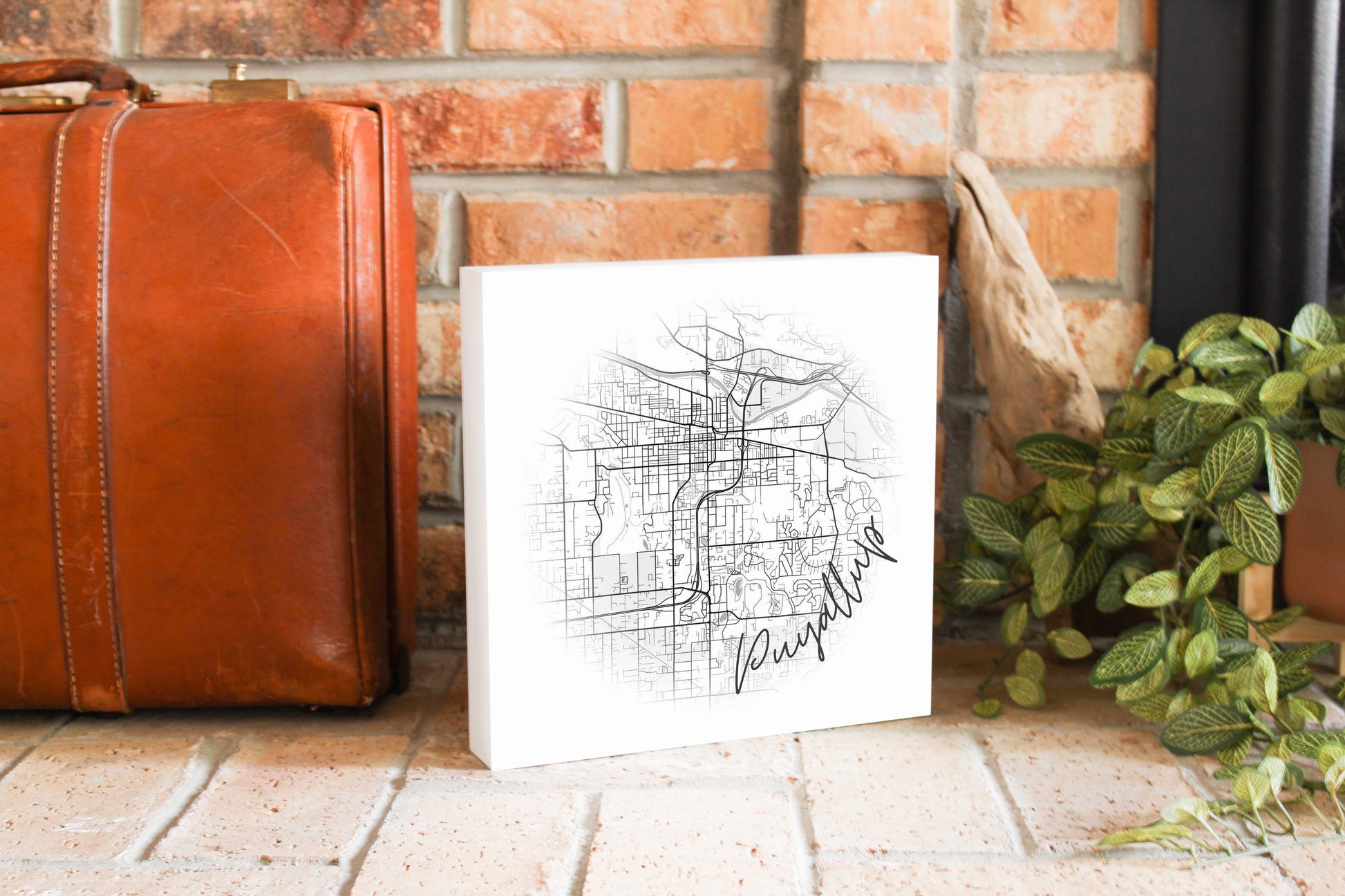 Minimalistic B&W Washington Puyallup Circle Map | Wood Block | Eaches | Min 2