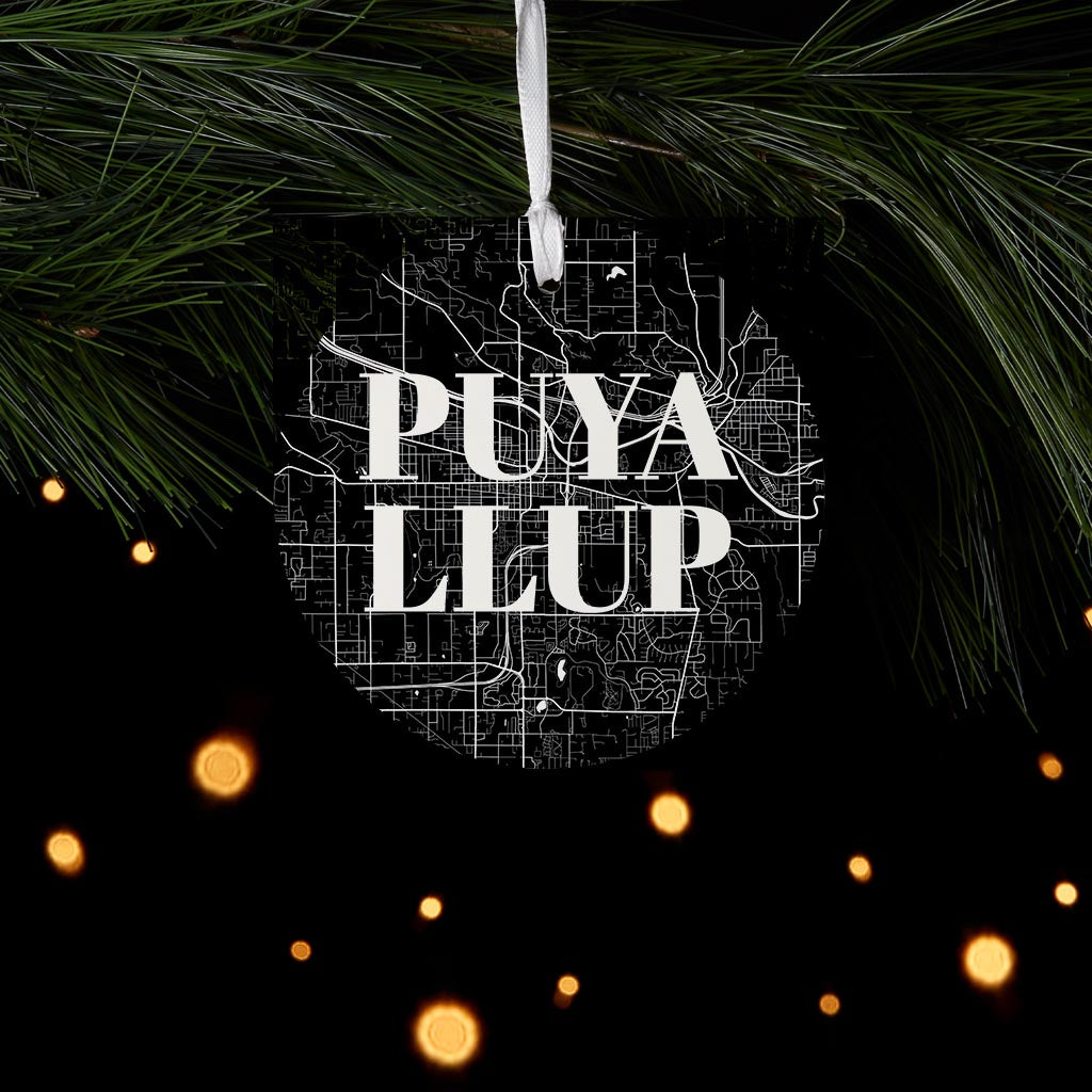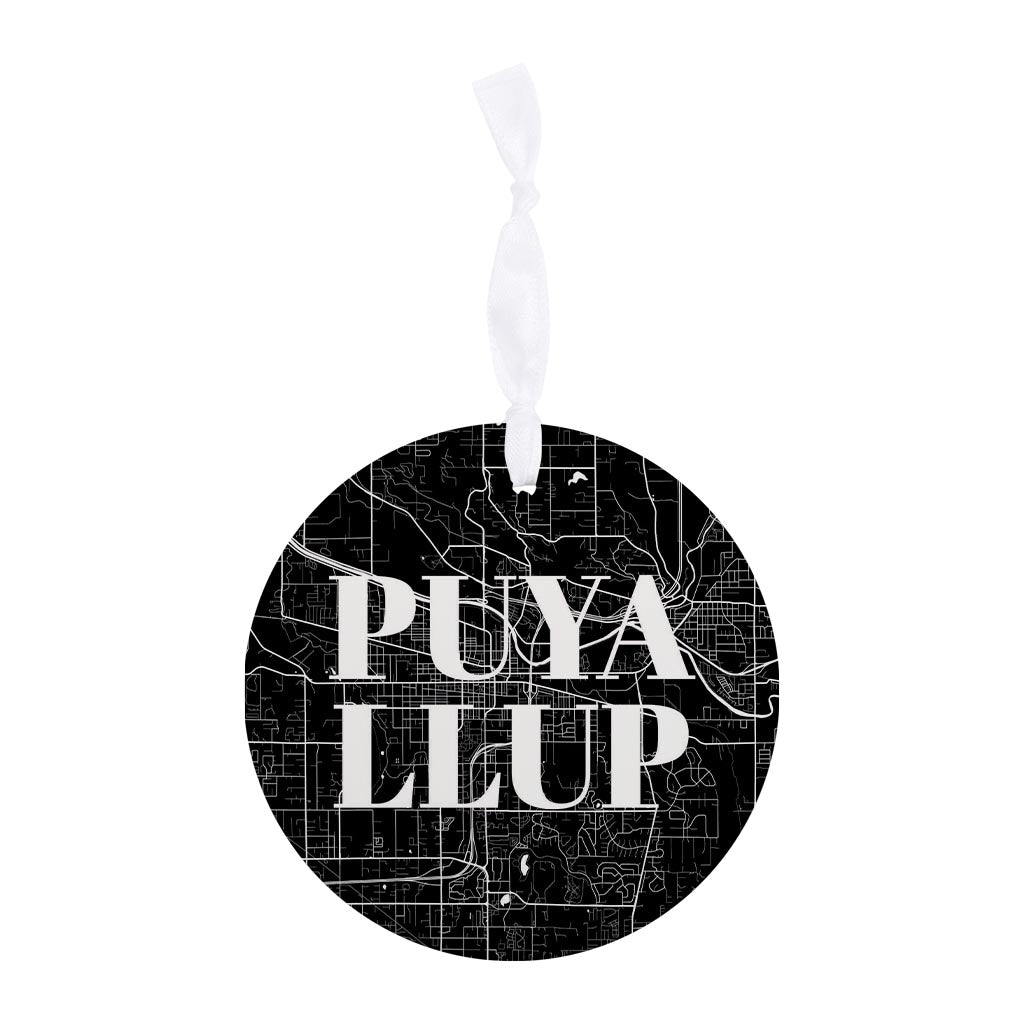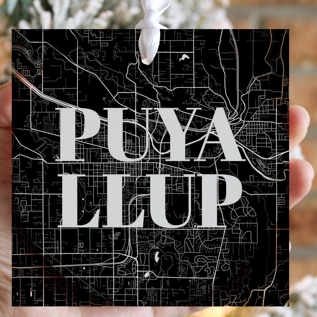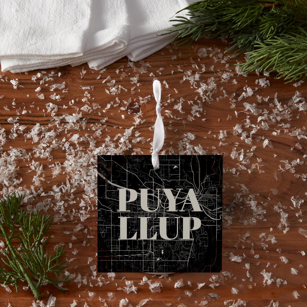 Minimalistic B&W Washington Puyallup Map | Wood Ornament | Eaches | Min 6