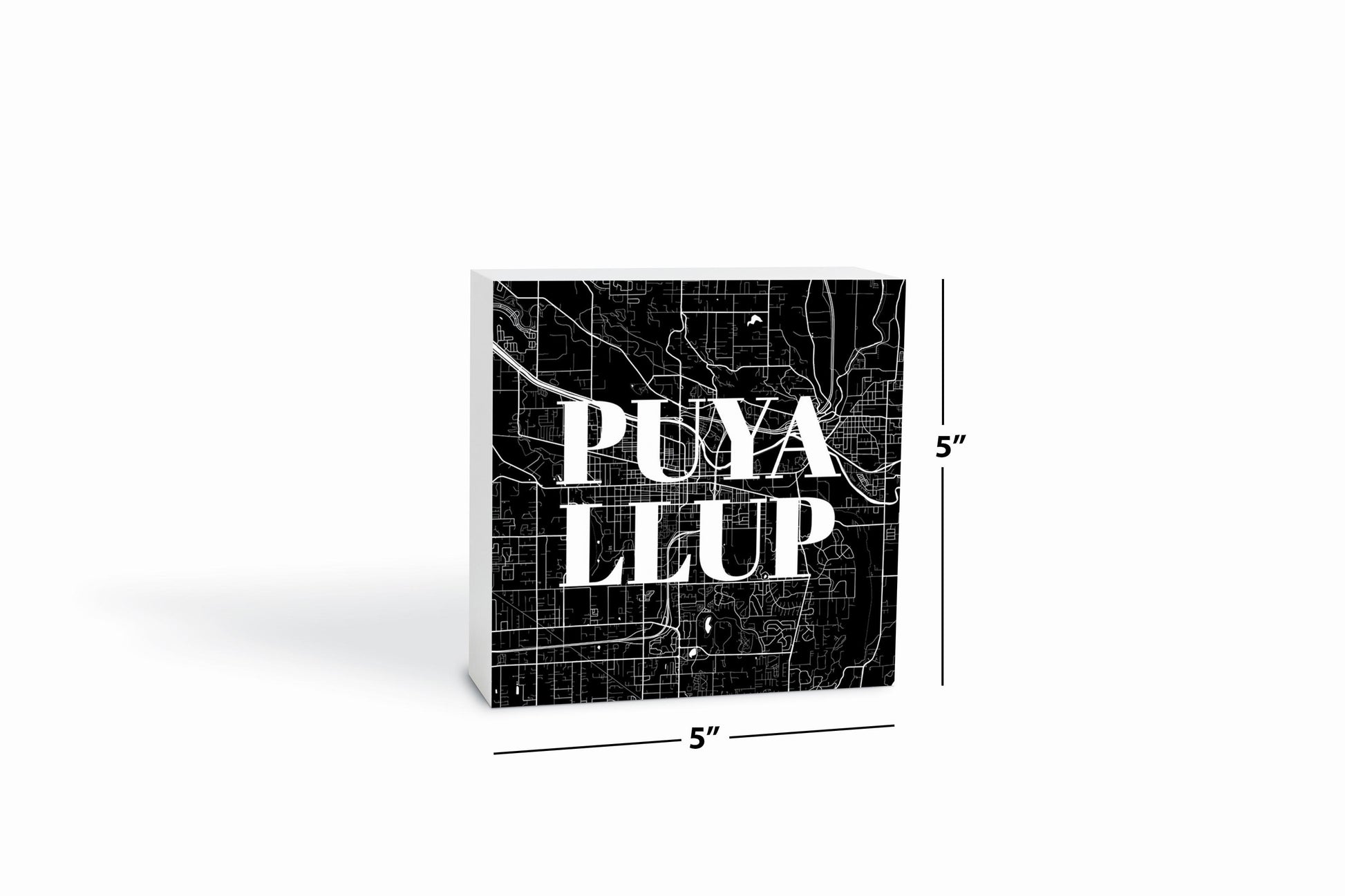 Minimalistic B&W Washington Puyallup Map | Wood Block | Eaches | Min 4