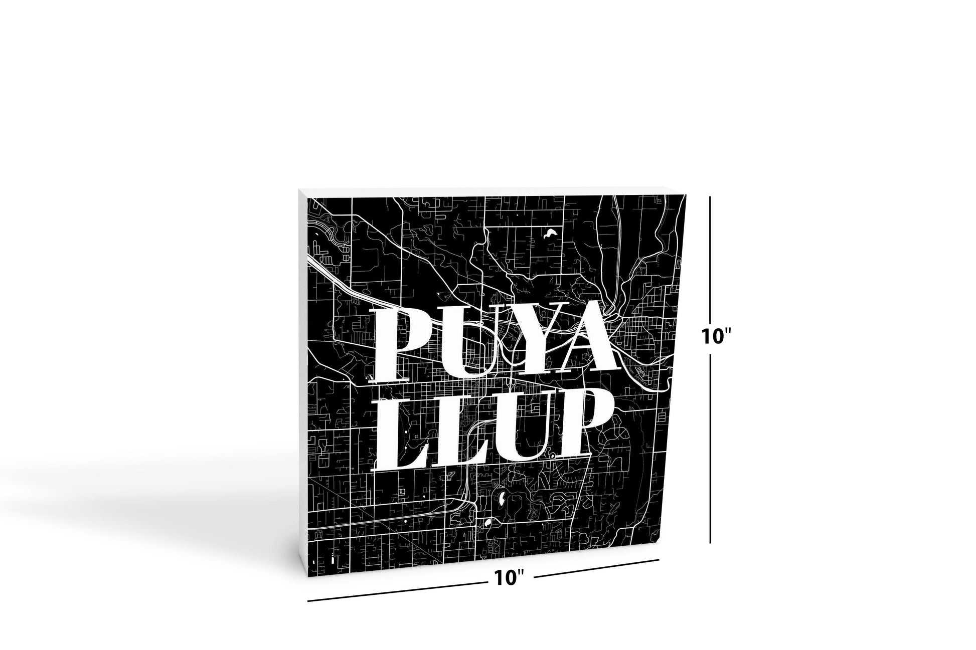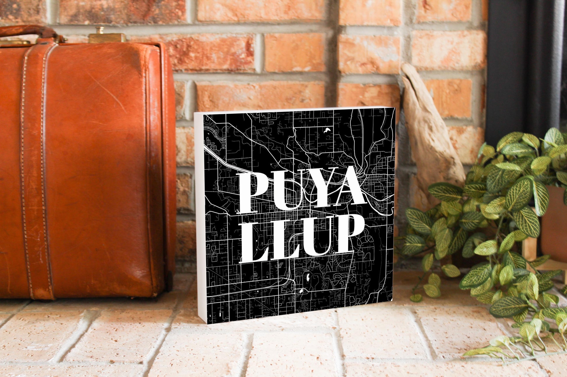 Minimalistic B&W Washington Puyallup Map | Wood Block | Eaches | Min 2