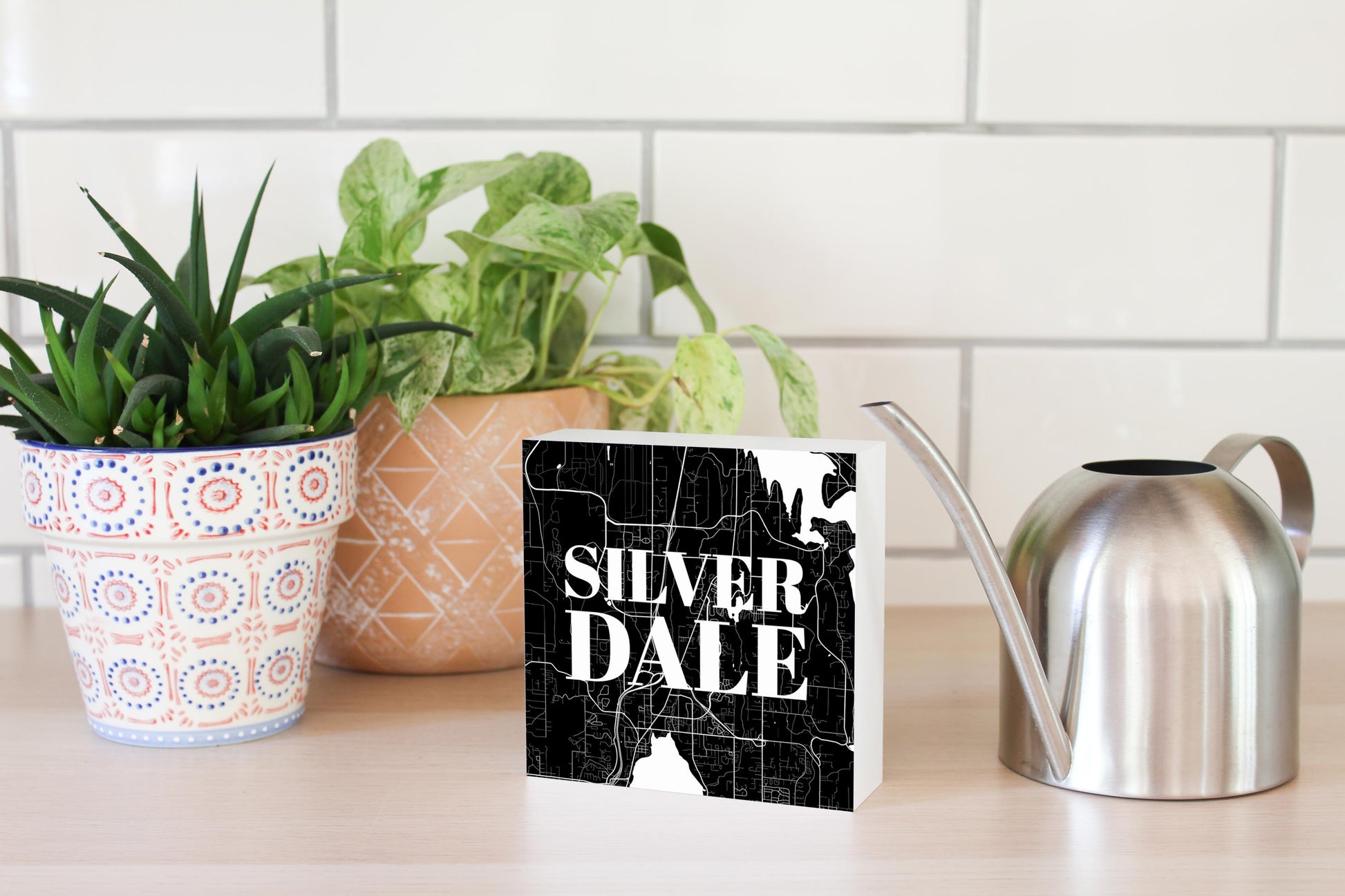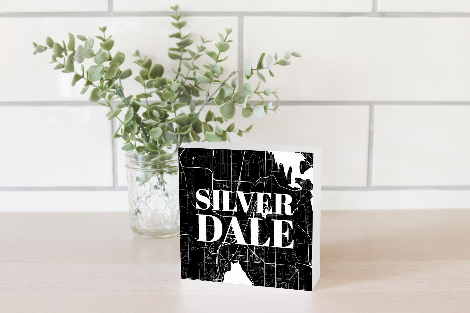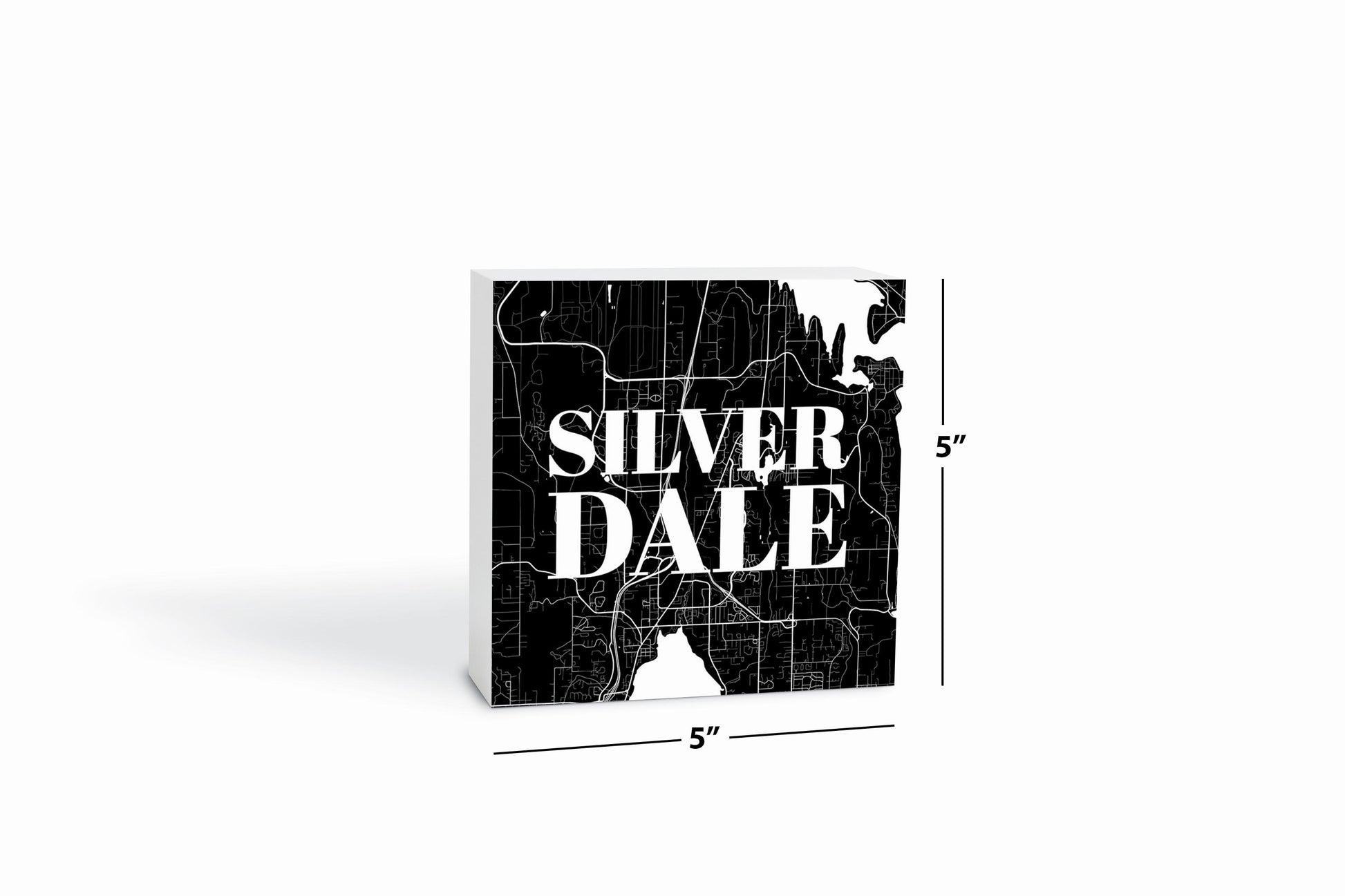 Minimalistic B&W Washington Silverdale Map | Wood Block | Eaches | Min 4
