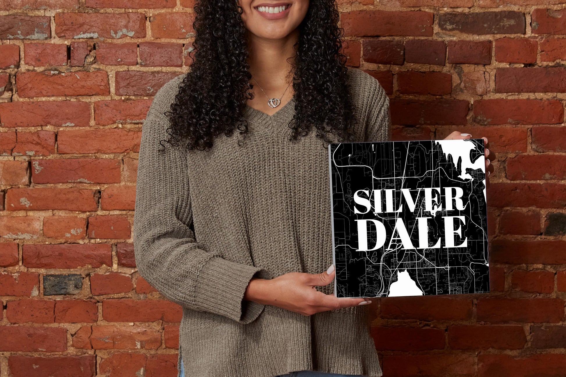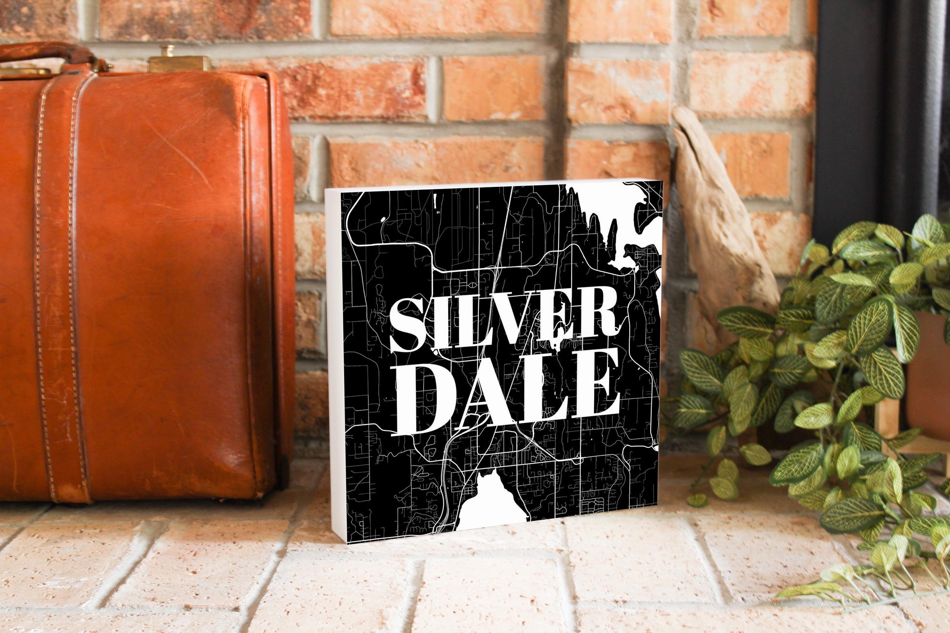 Minimalistic B&W Washington Silverdale Map | Wood Block | Eaches | Min 2