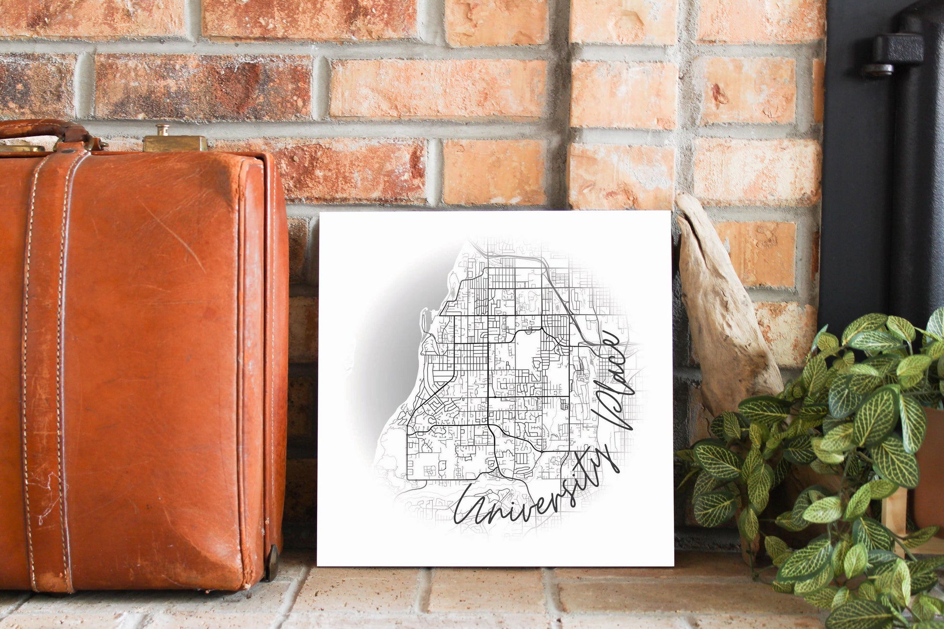Minimalistic B&W Washington University Place Circle Map | Wood Sign | Eaches | Min 2
