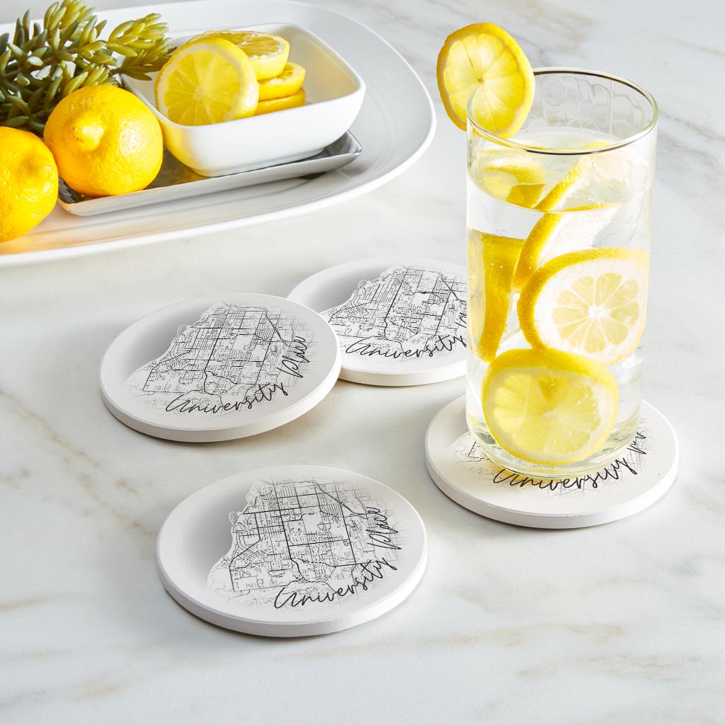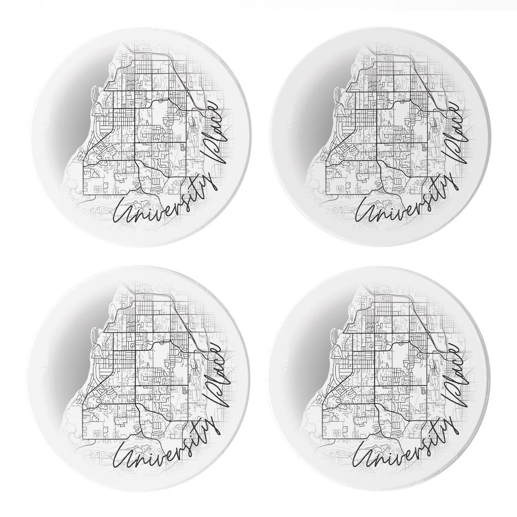 Minimalistic B&W Washington University Place Circle Map | Absorbent Coasters | Set of 4 | Min 2