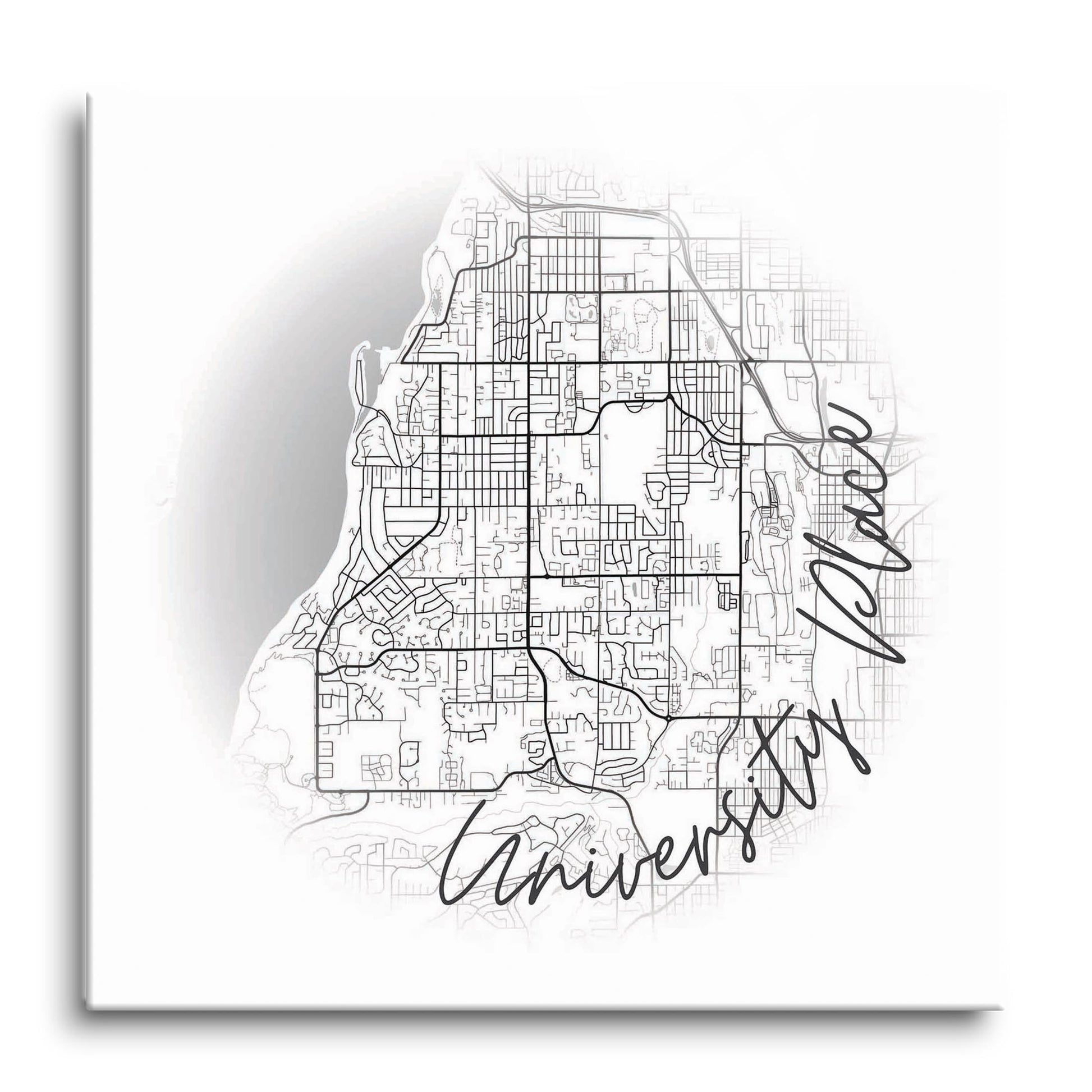 Minimalistic B&W Washington University Place Circle Map | Hi-Def Glass Art | Eaches | Min 1