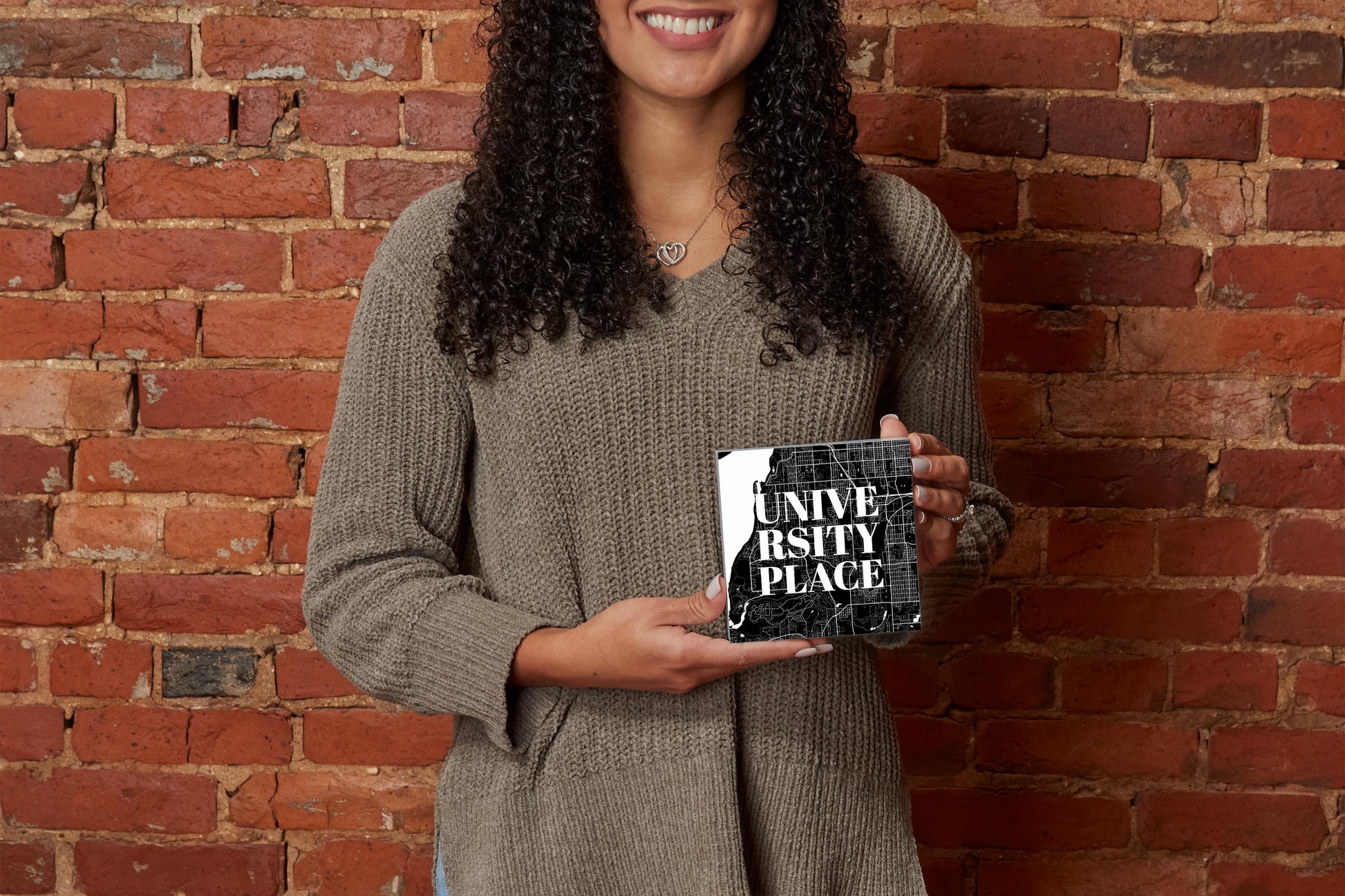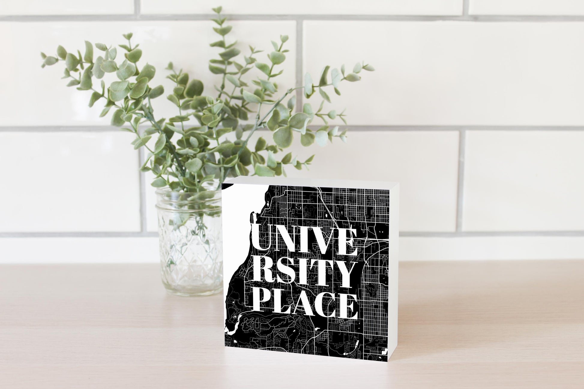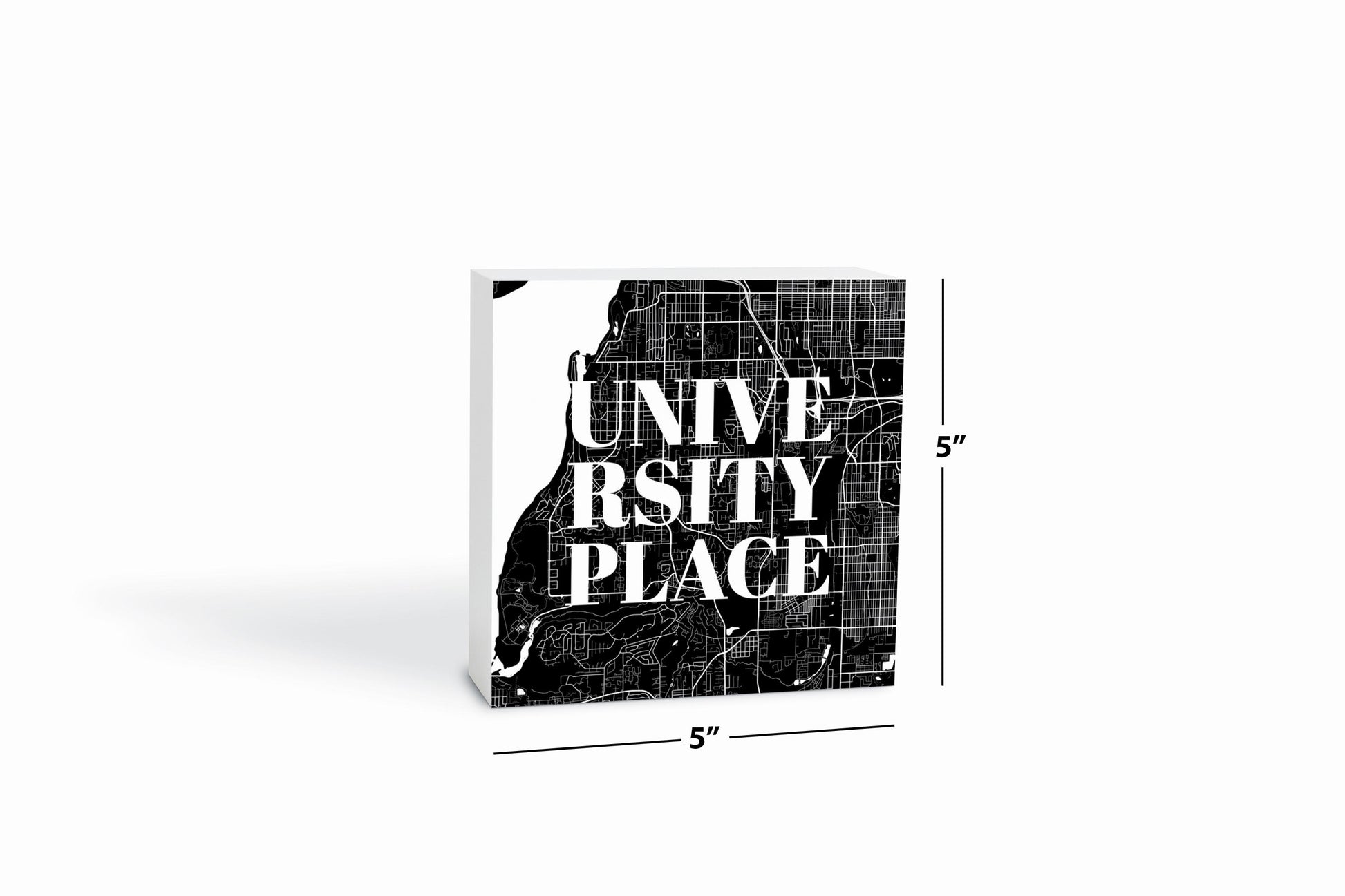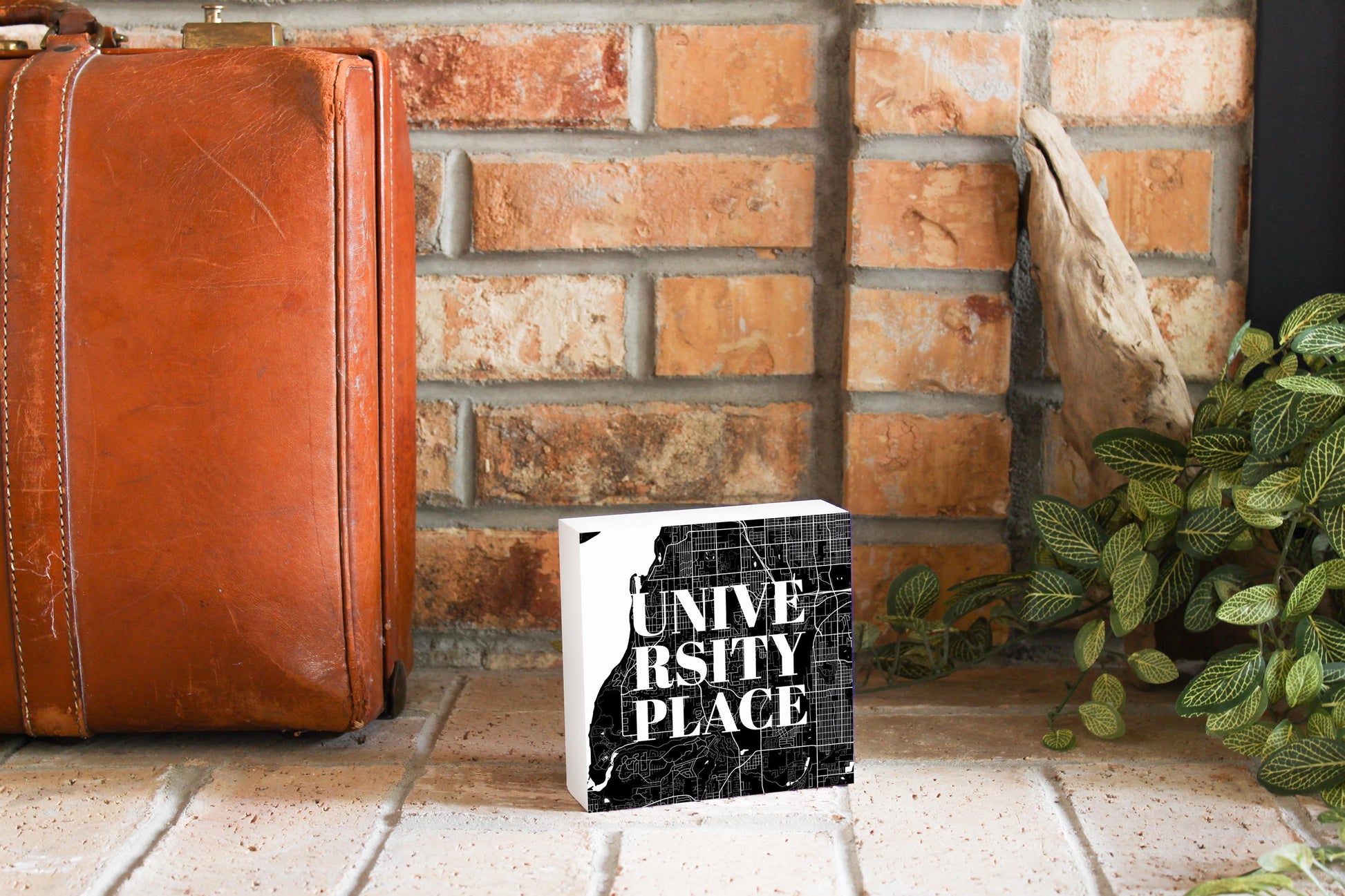 Minimalistic B&W Washington University Place Map | Wood Block | Eaches | Min 4