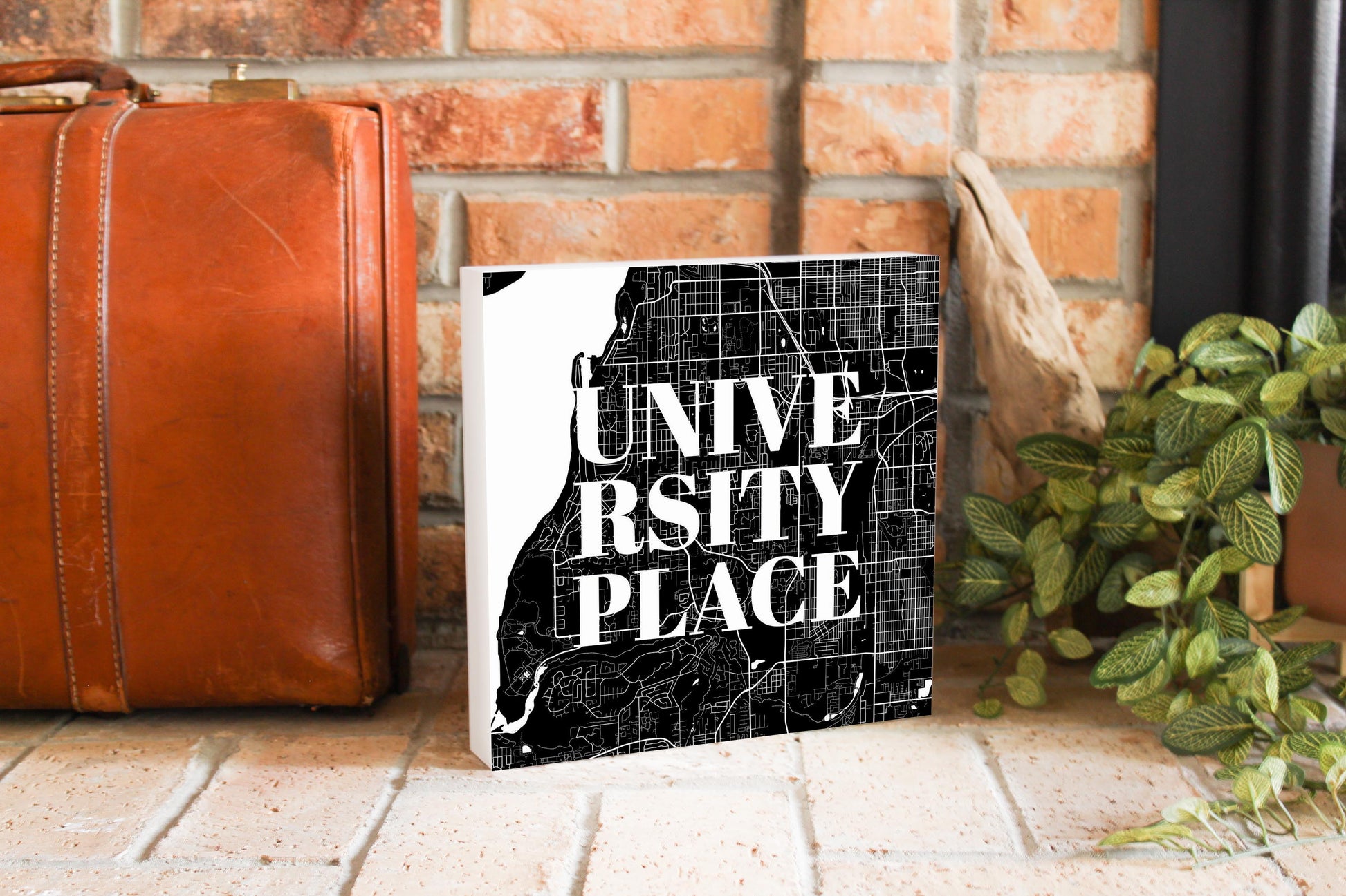 Minimalistic B&W Washington University Place Map | Wood Block | Eaches | Min 2
