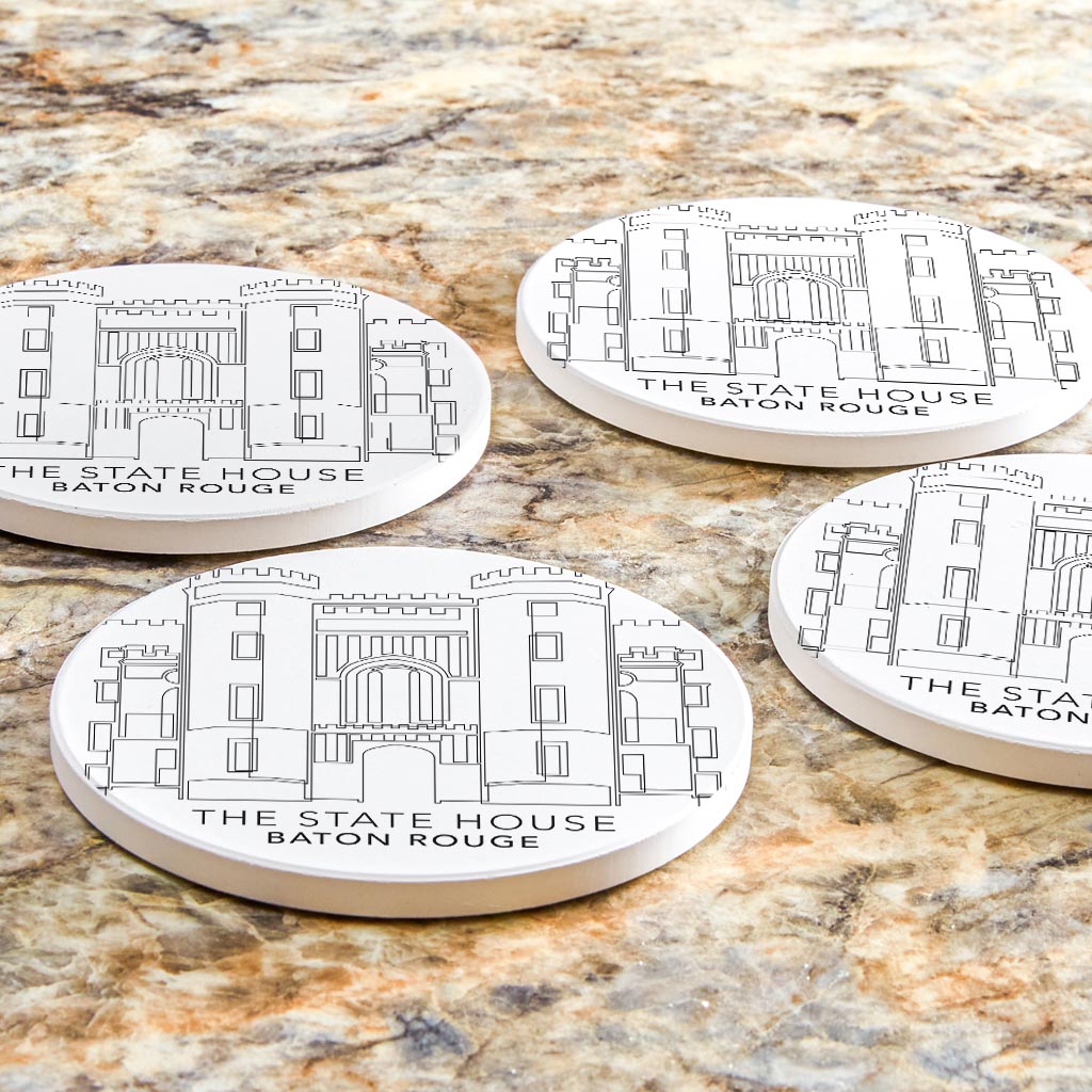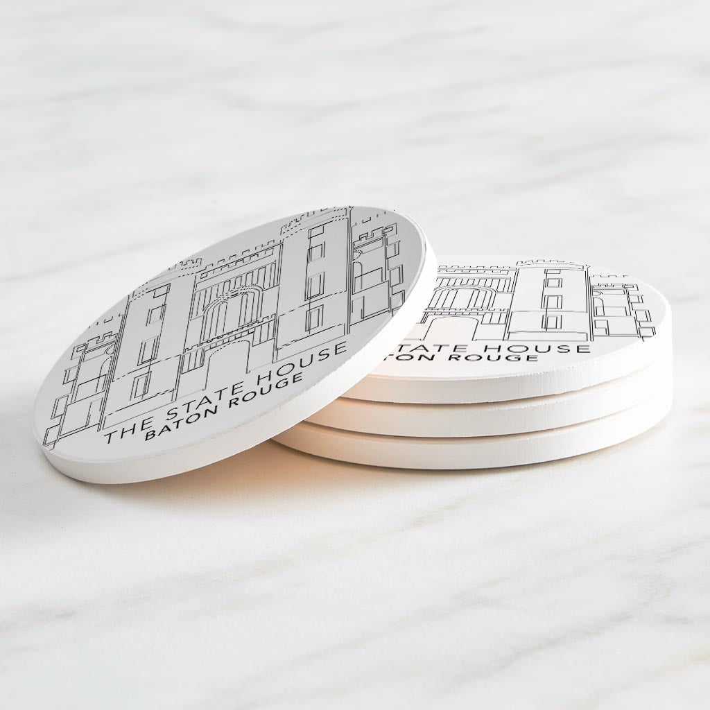 Minimalistic Baton Rouge State House| Absorbent Coasters | Set of 4 | Min 2
