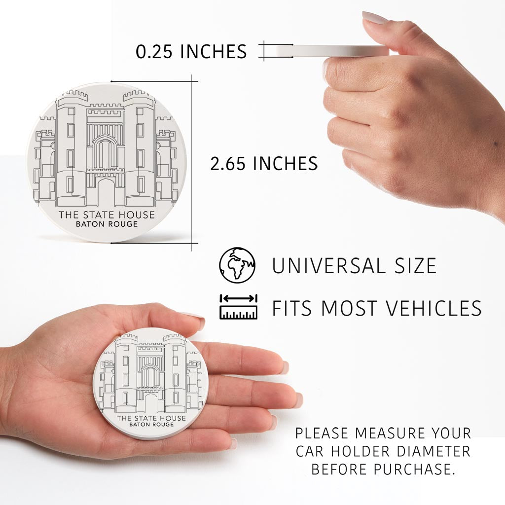 Minimalistic Baton Rouge State House | Absorbent Car Coasters | Set of 2 | Min 4