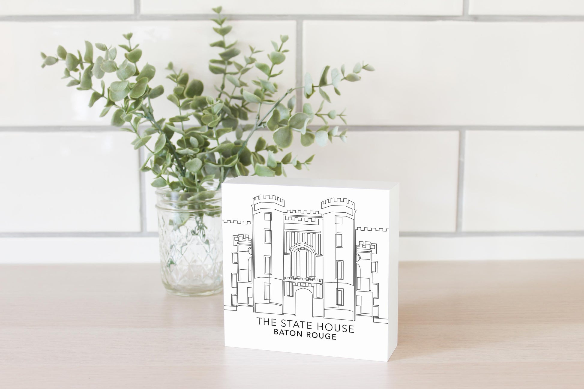 Minimalistic Baton Rouge State House | Wood Block | Eaches | Min 4