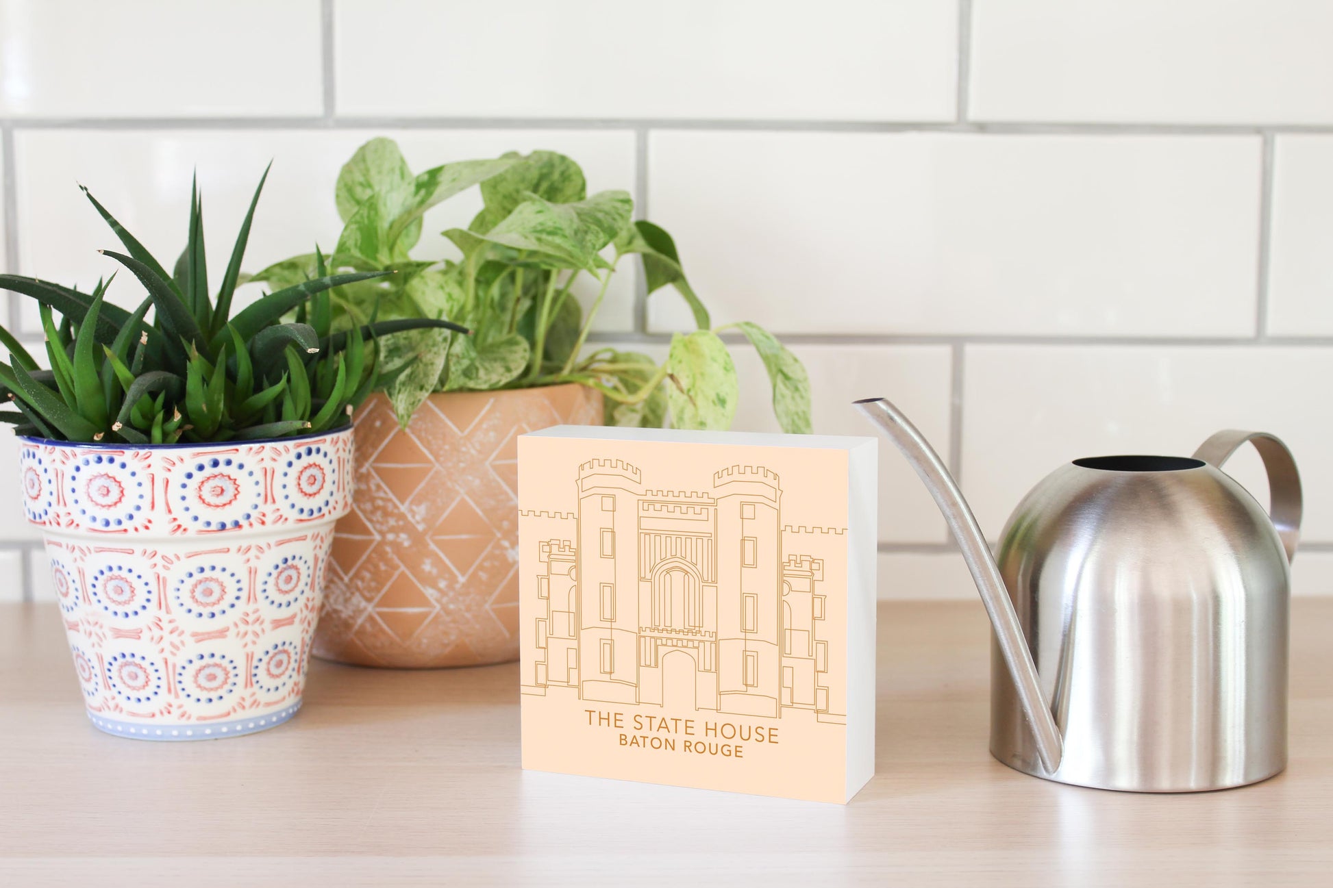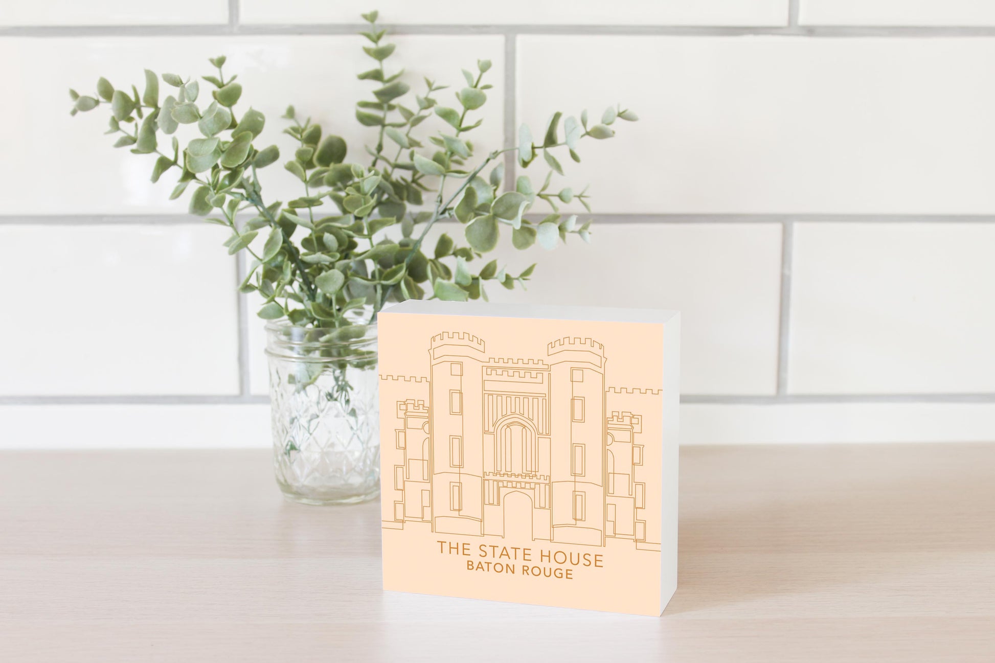 Minimalistic Baton Rouge State House Colorful| Wood Block | Eaches | Min 4