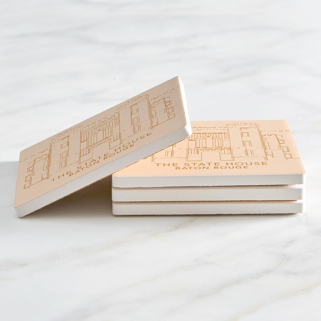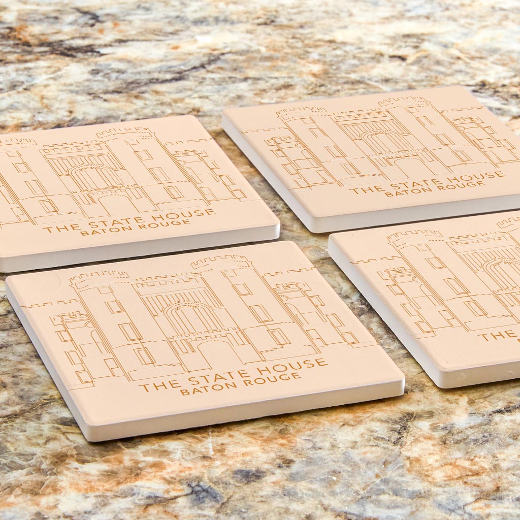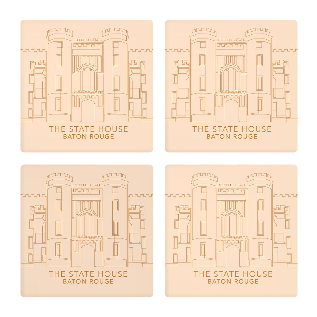 Minimalistic Baton Rouge State House Colorful | Absorbent Coasters | Set of 4 | Min 2