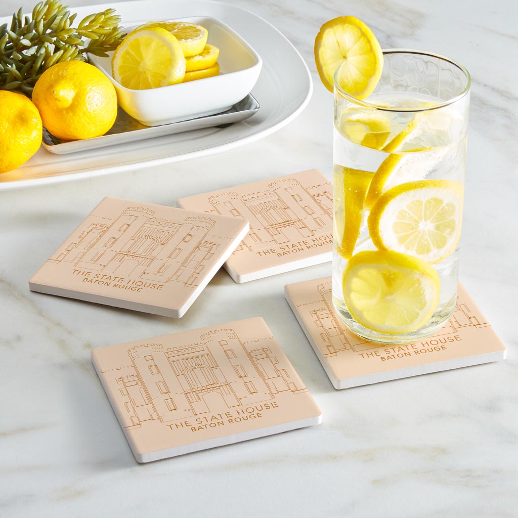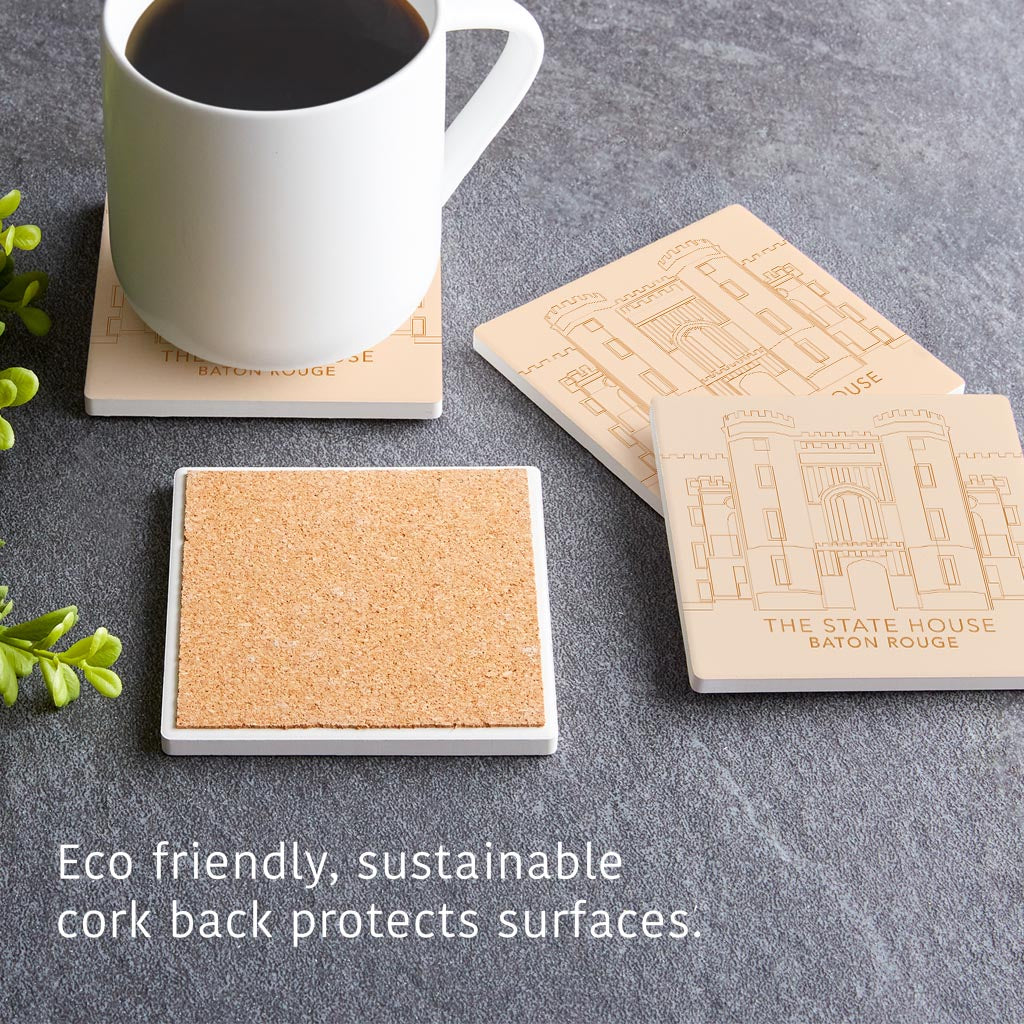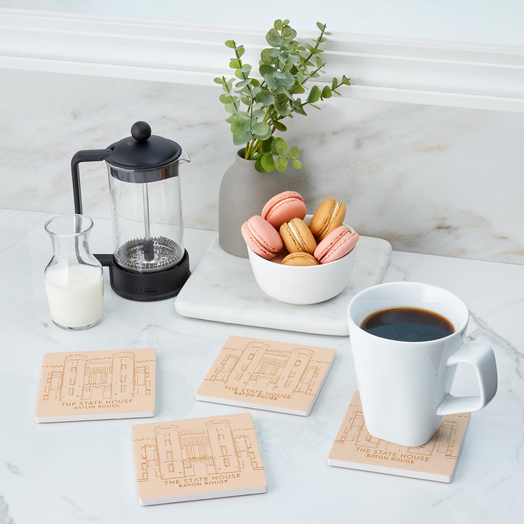 Minimalistic Baton Rouge State House Colorful | Absorbent Coasters | Set of 4 | Min 2