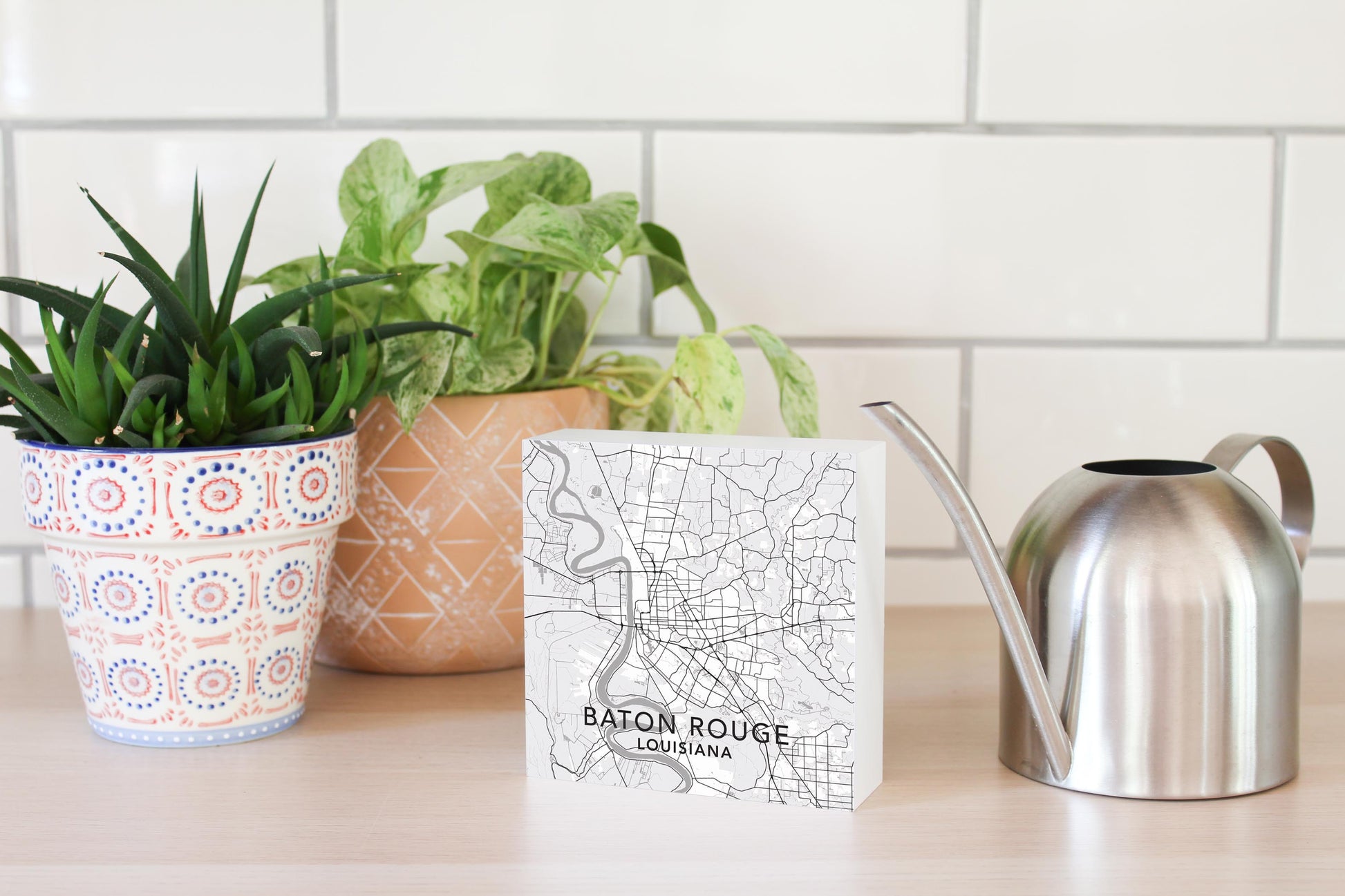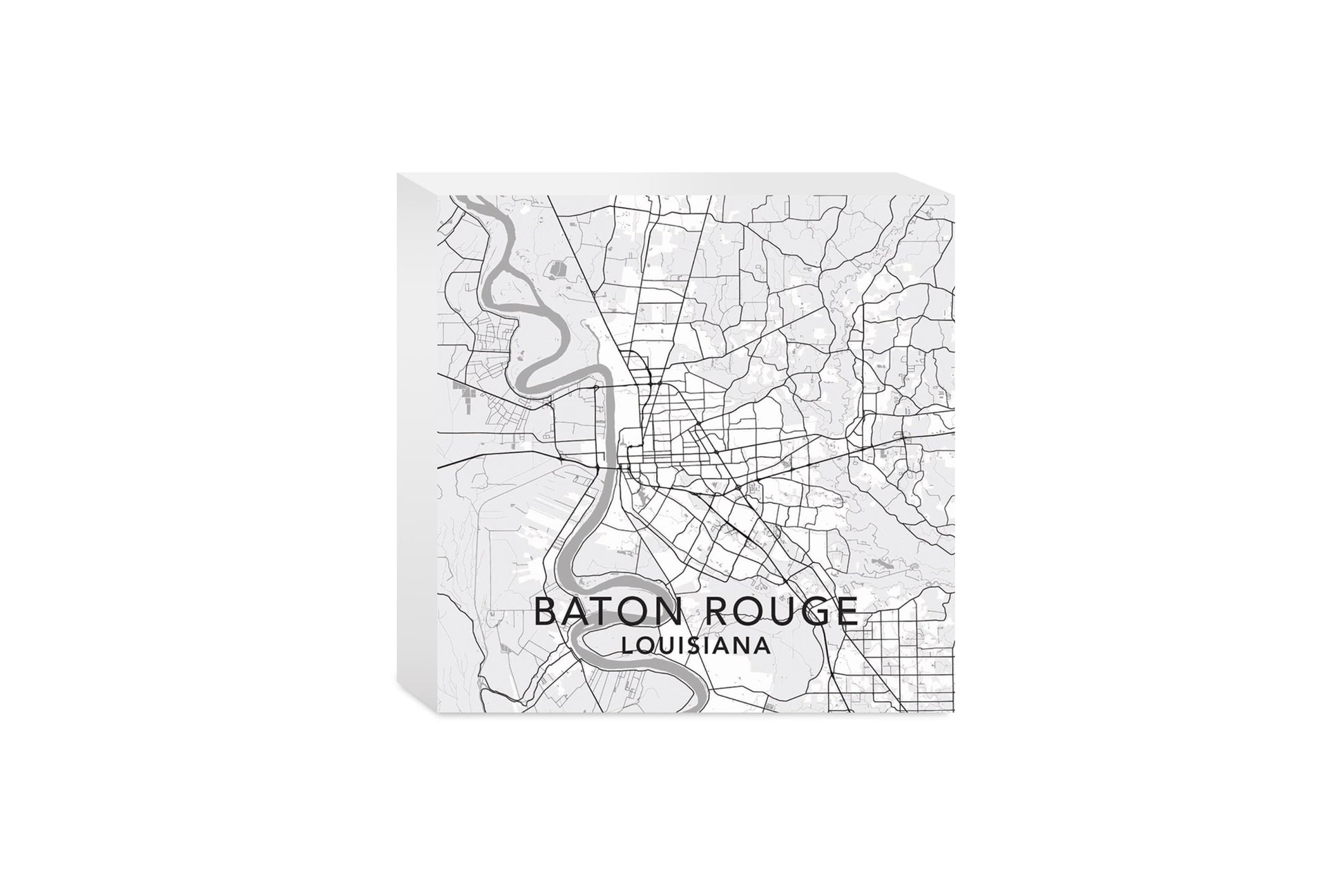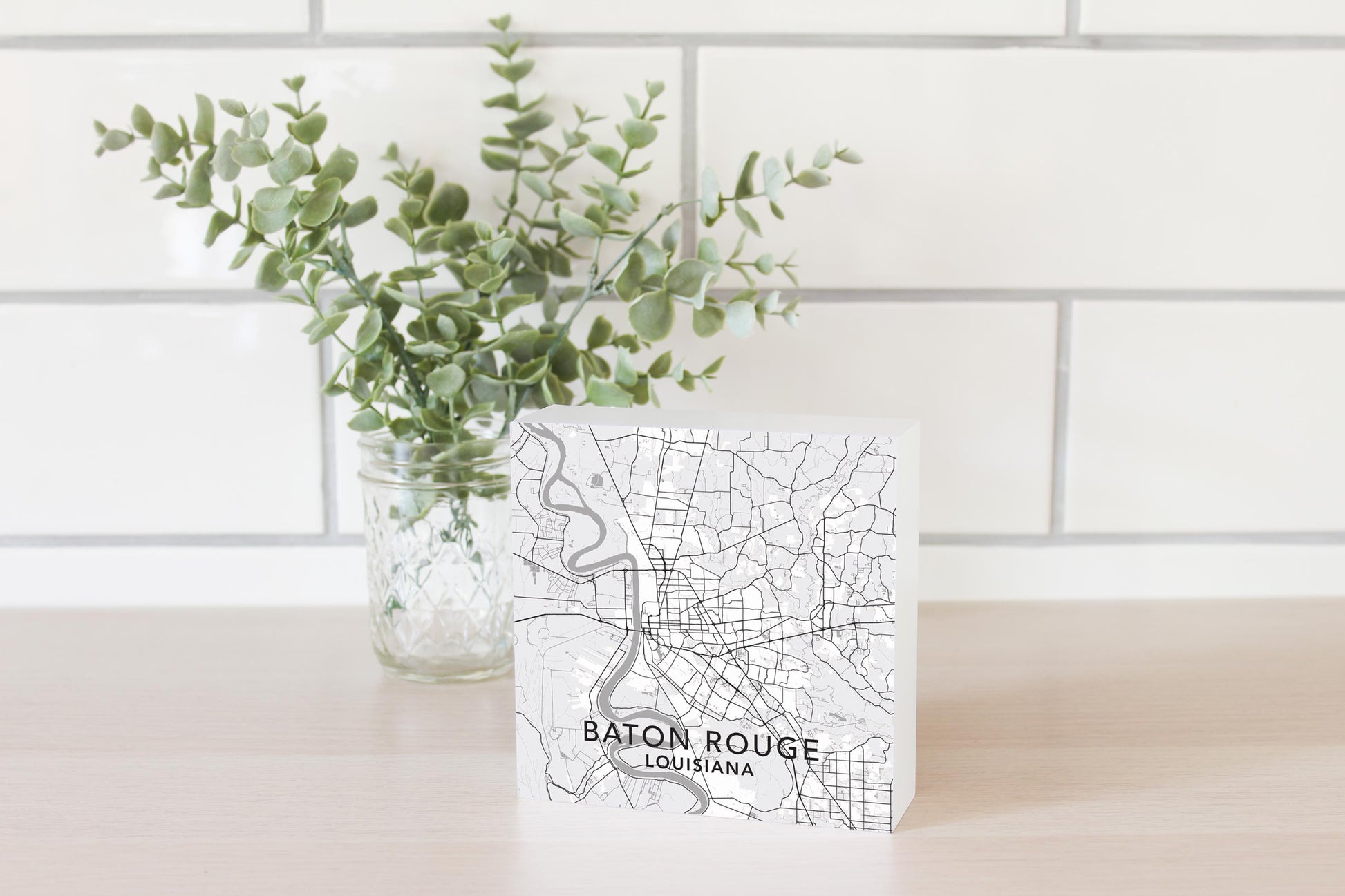 Minimalistic Baton Rouge White Map | Wood Block | Eaches | Min 4