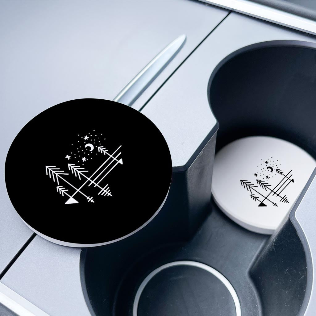 Minimalistic Tree Line Drawings | Absorbent Car Coasters | Set of 2 | Min 4