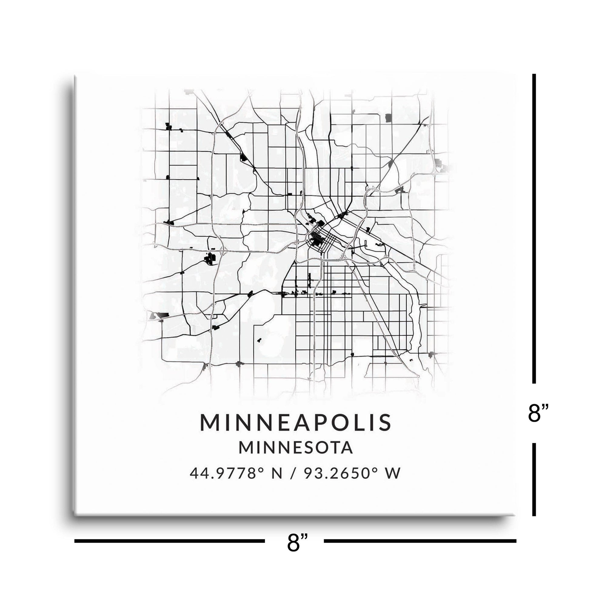 Minneapolis MN Minimalistic Map with Coordinates 8x8 Glass P