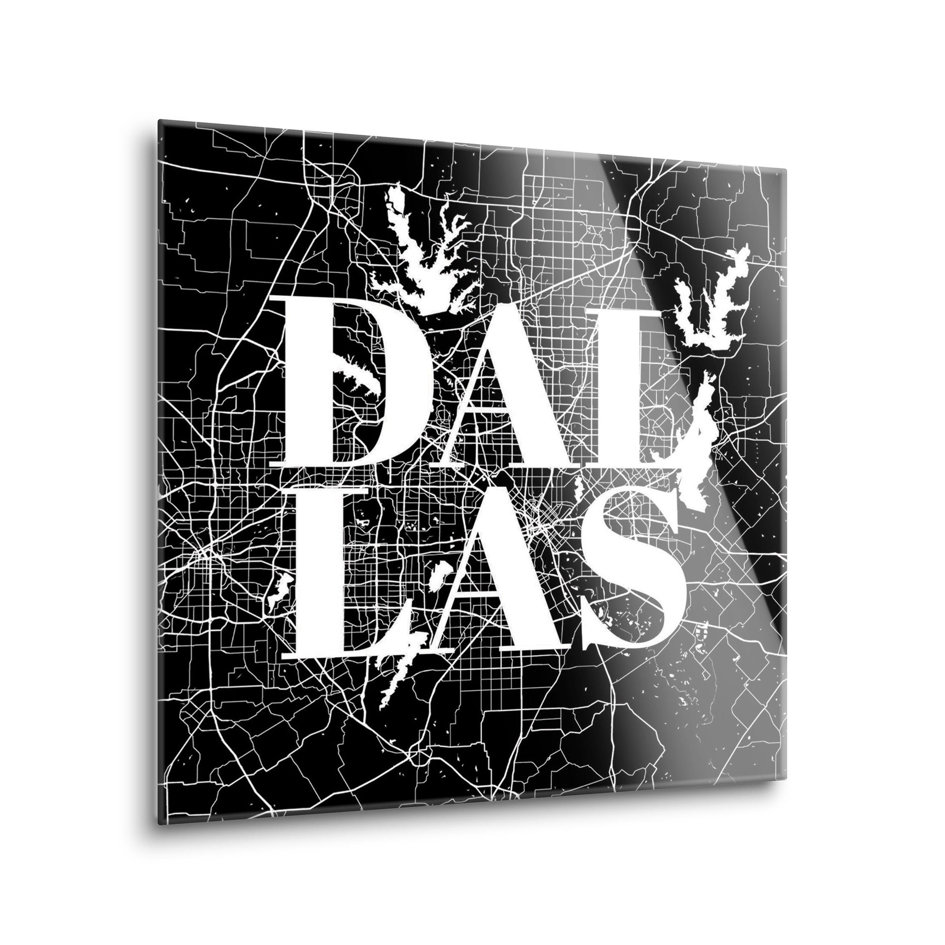 Modern Black Dallas Map | Hi-Def Glass Art | Eaches | Min 2