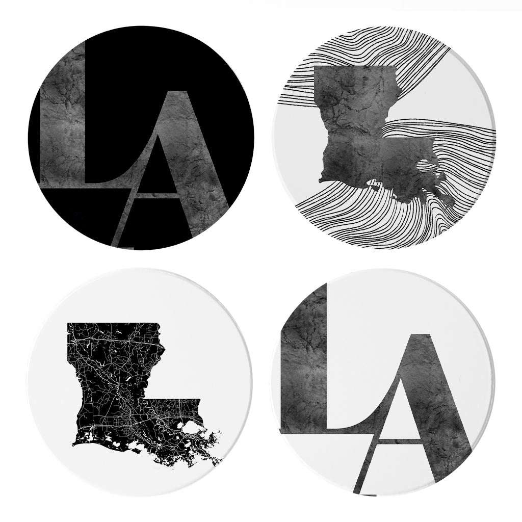 Modern Black White Louisiana Set | Absorbent Coasters | Set of 4 | Min 2