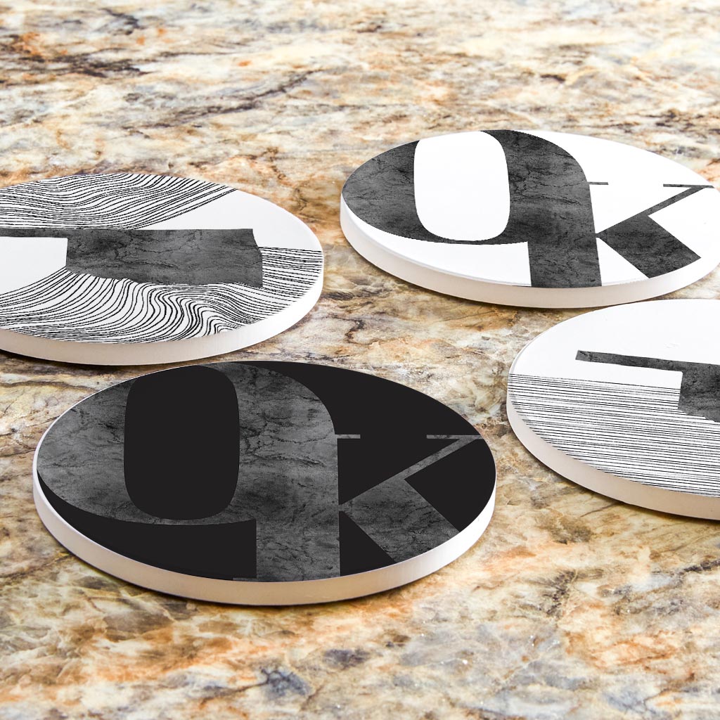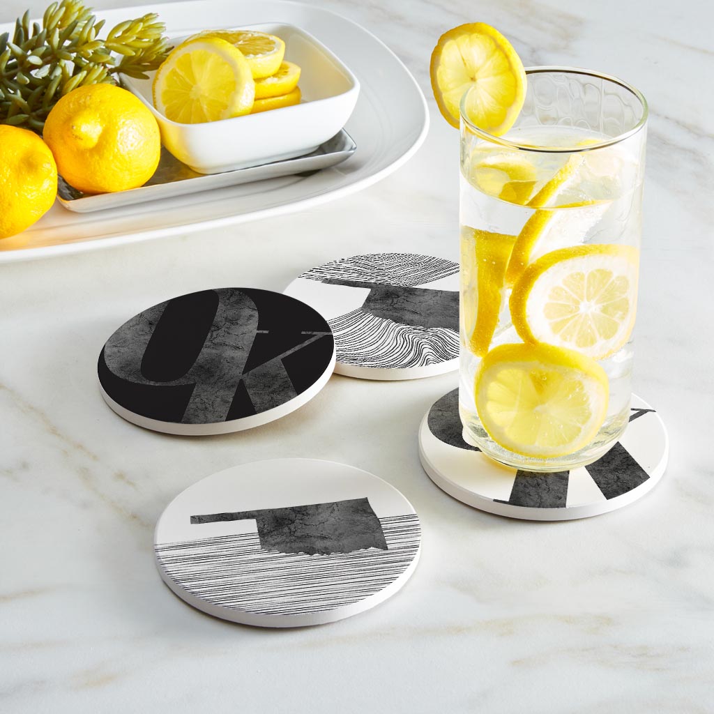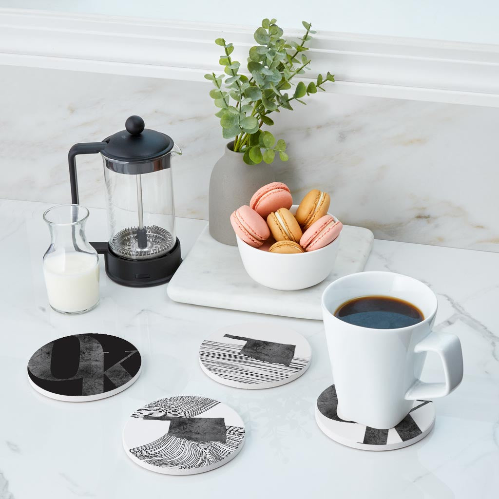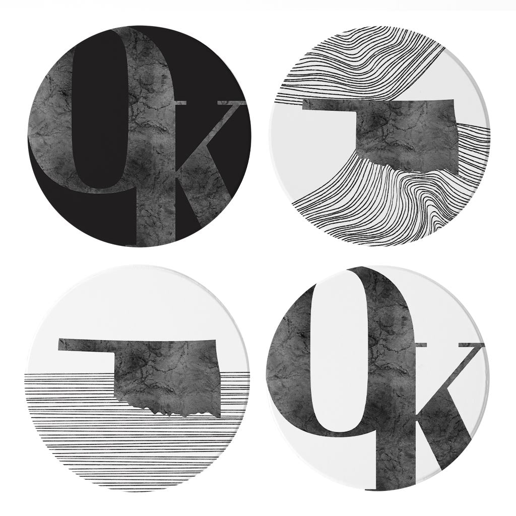 Modern Black White Oklahoma Set | Absorbent Coasters | Set of 4 | Min 2