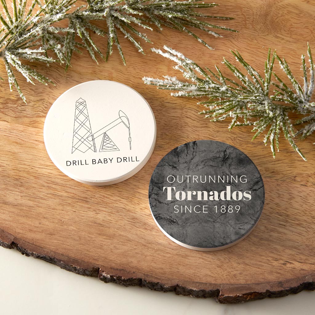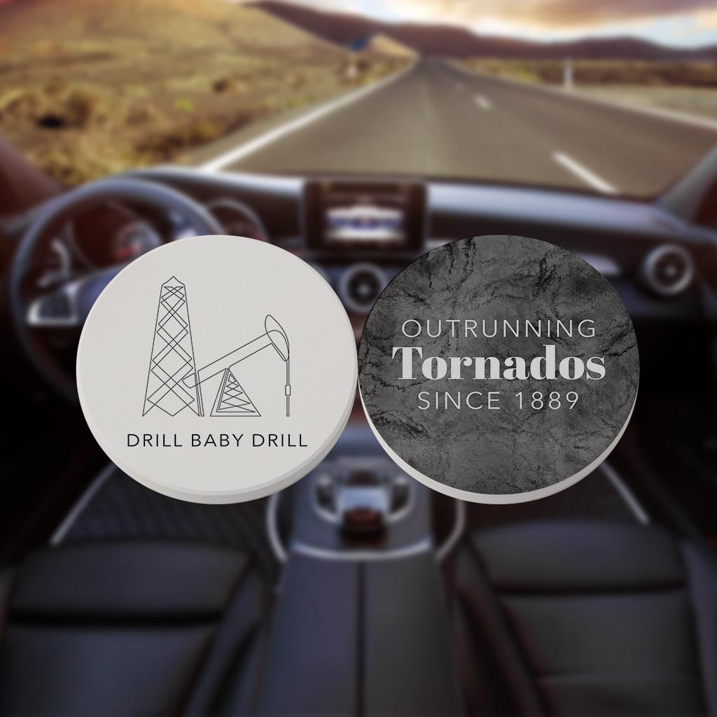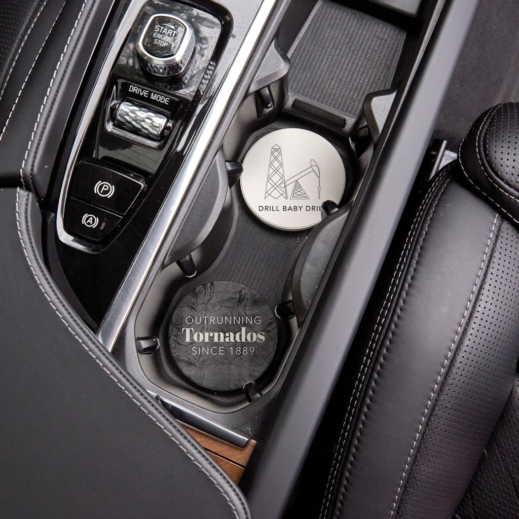 Modern Black White Oklahoma Set | Absorbent Car Coasters | Set of 2 | Min 4