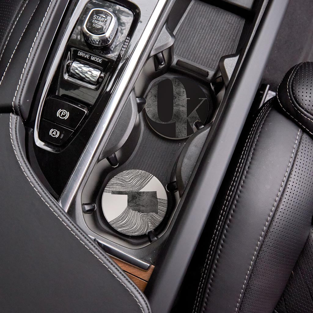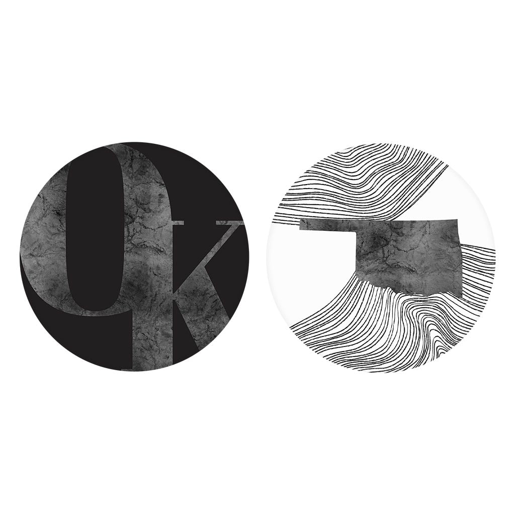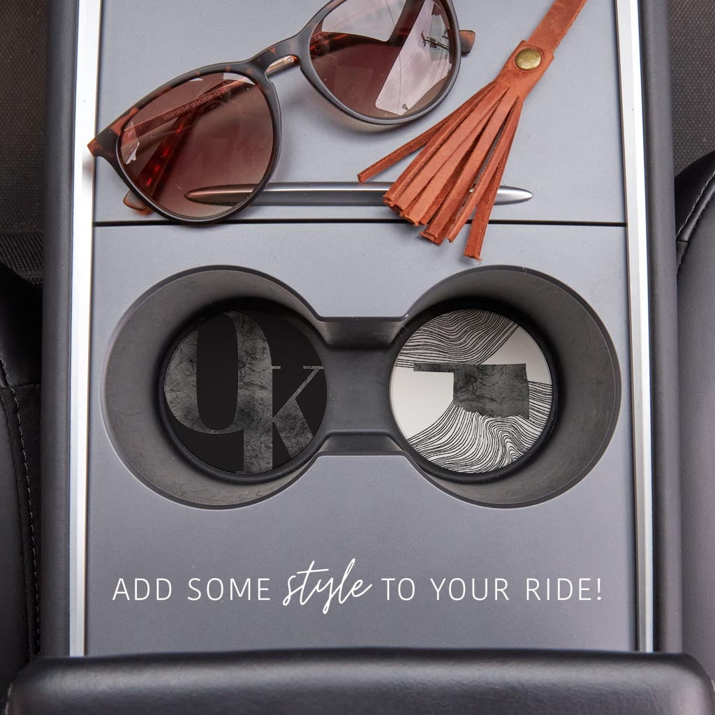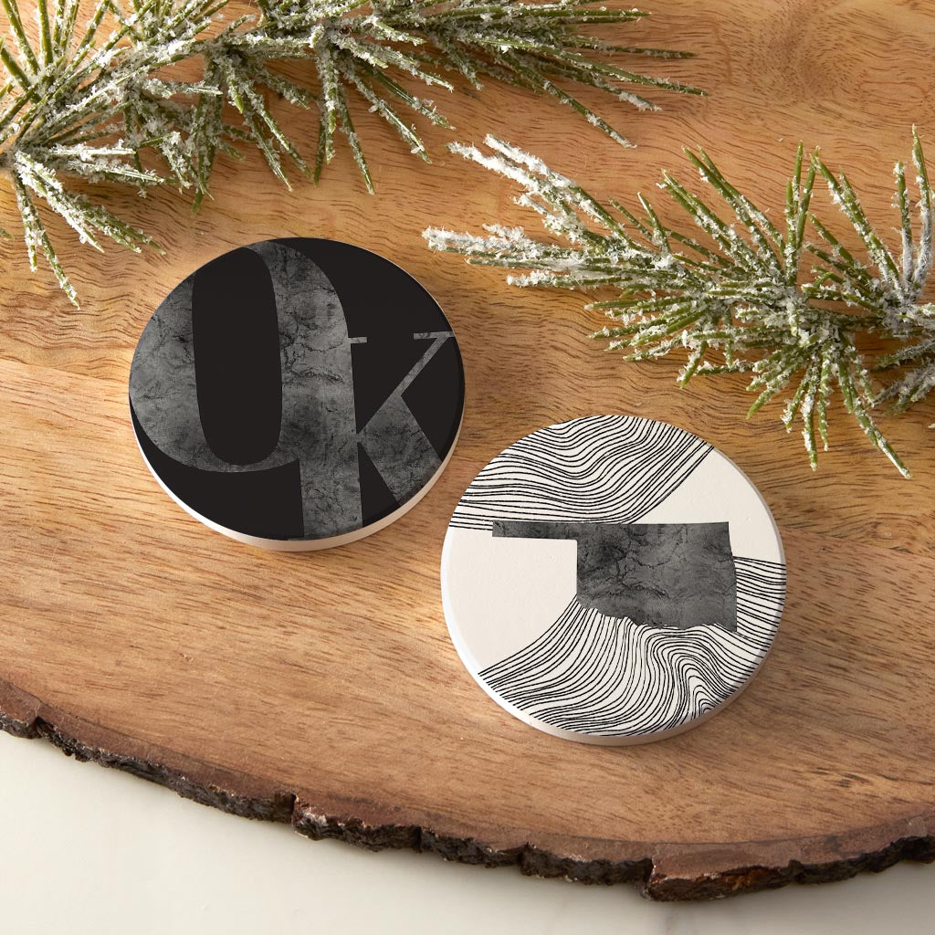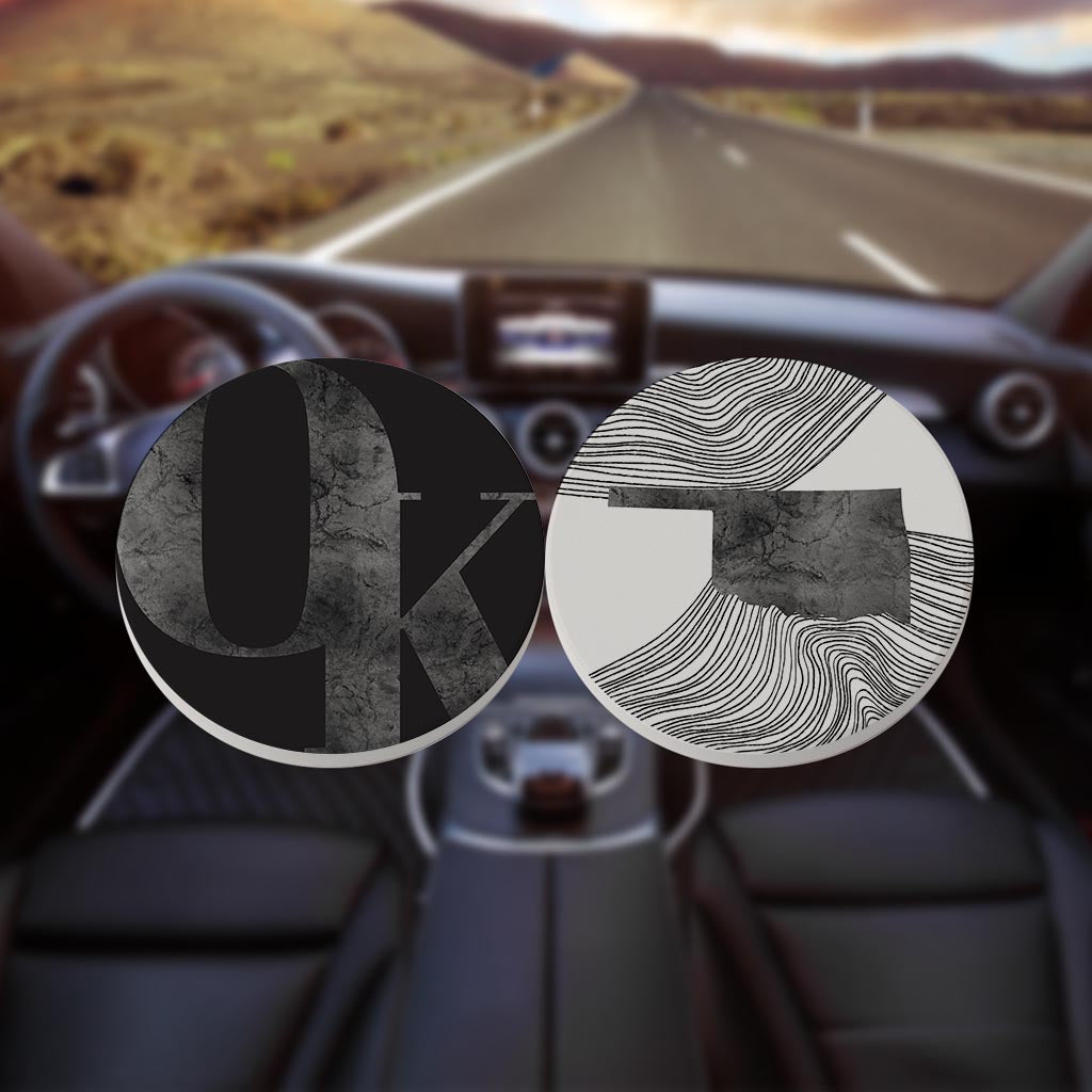 Modern Black White Oklahoma Set | Absorbent Car Coasters | Set of 2 | Min 4