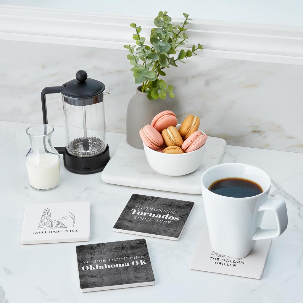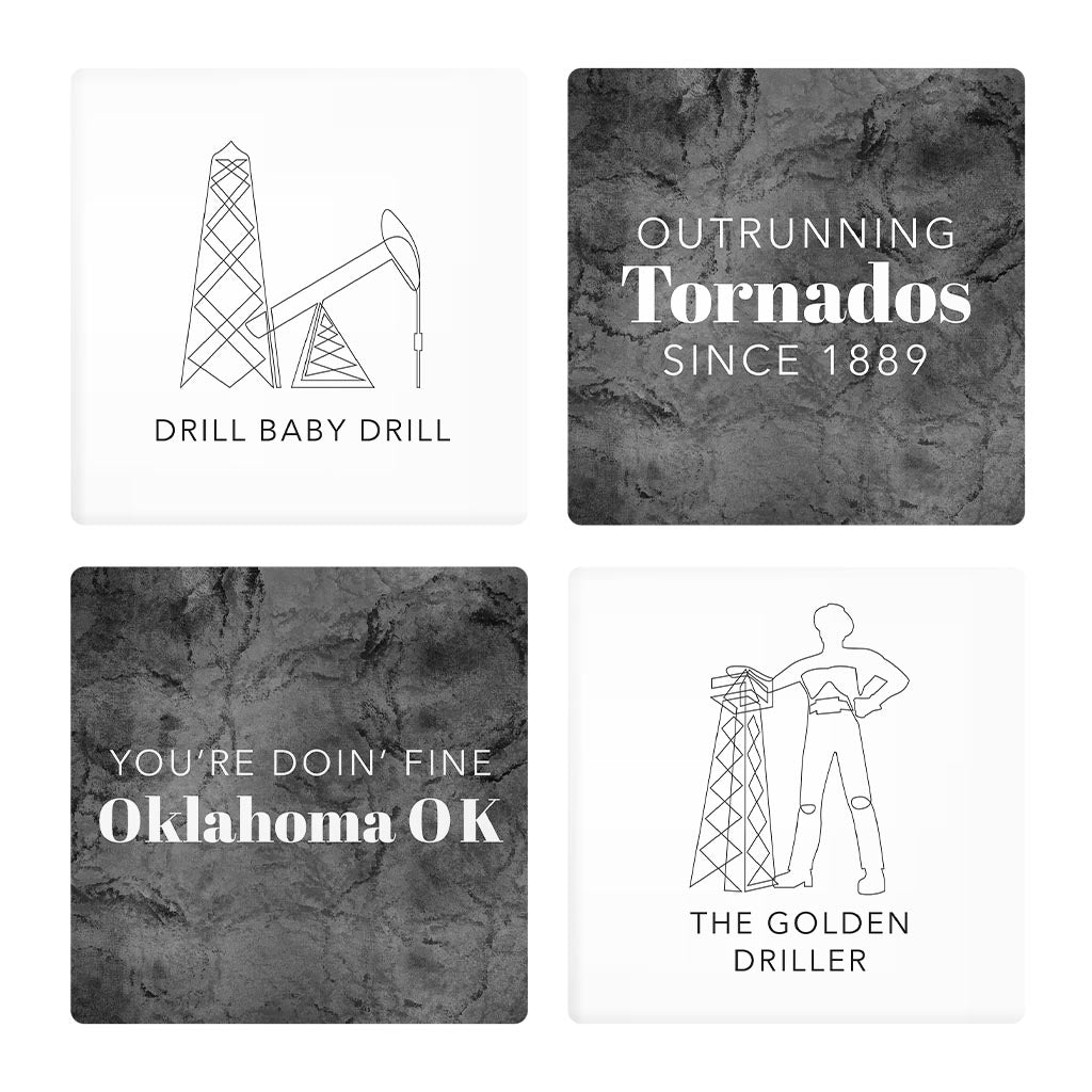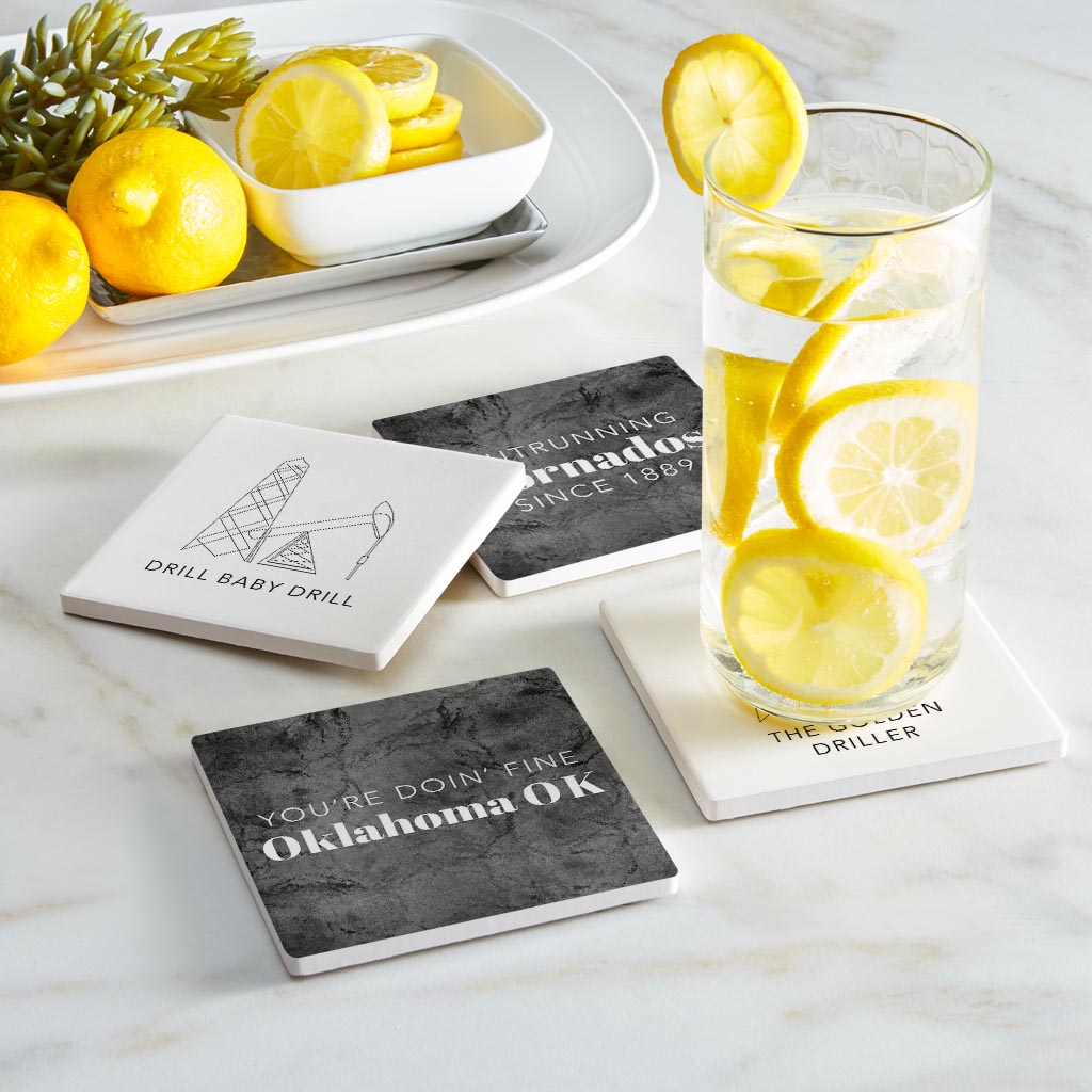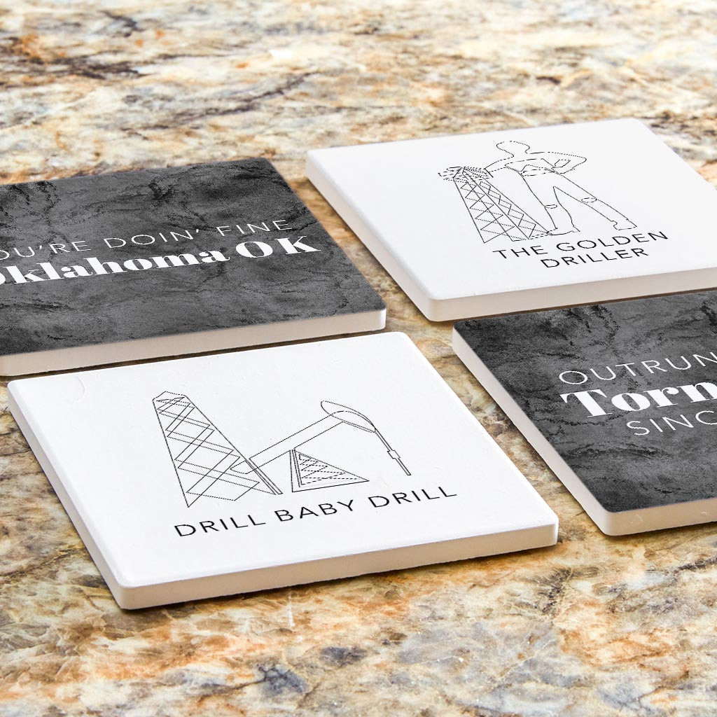 Modern Black White Oklahoma Set | Absorbent Coasters | Set of 4 | Min 2