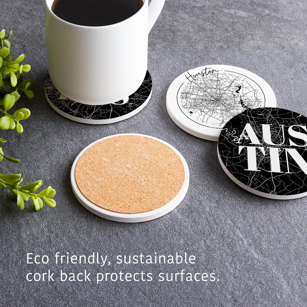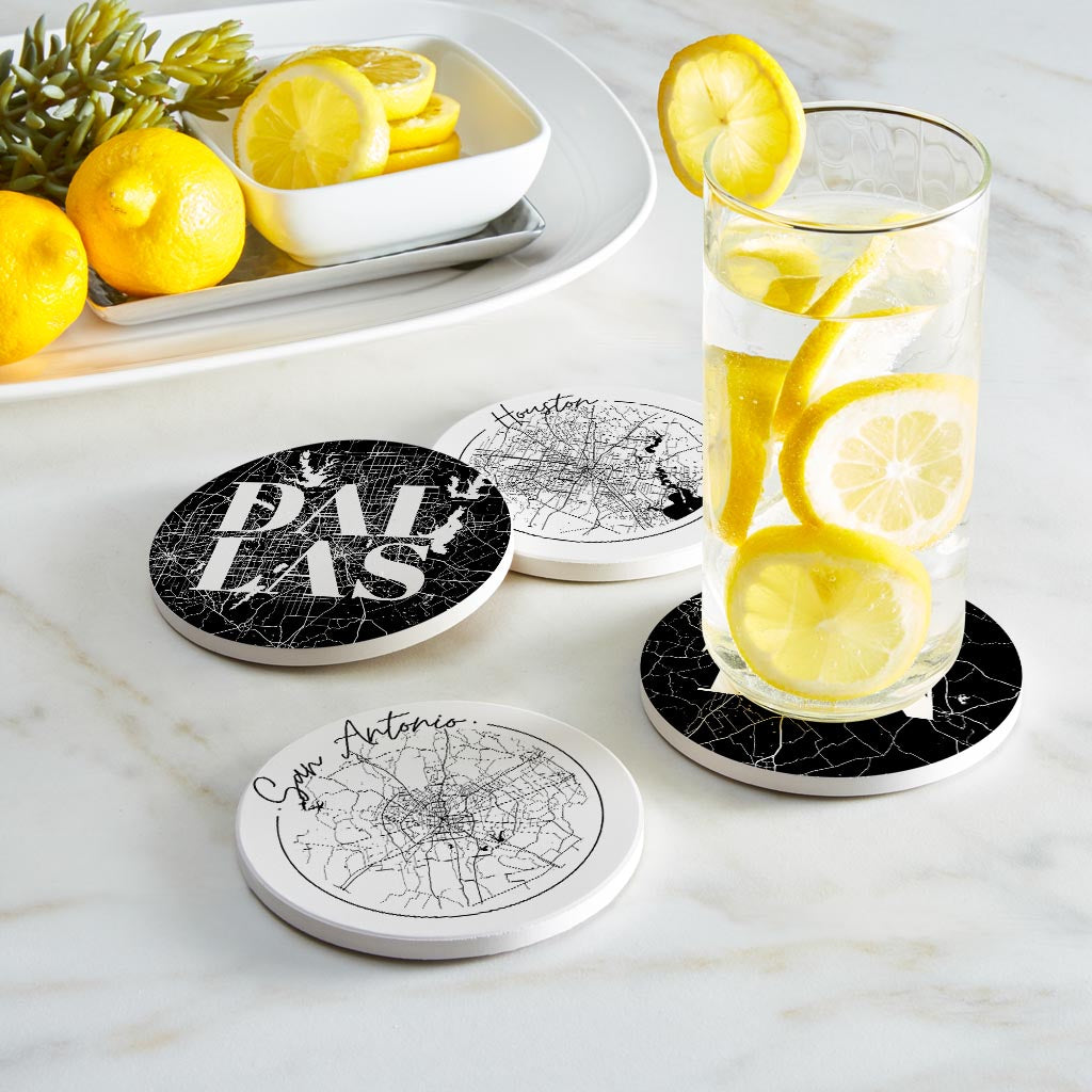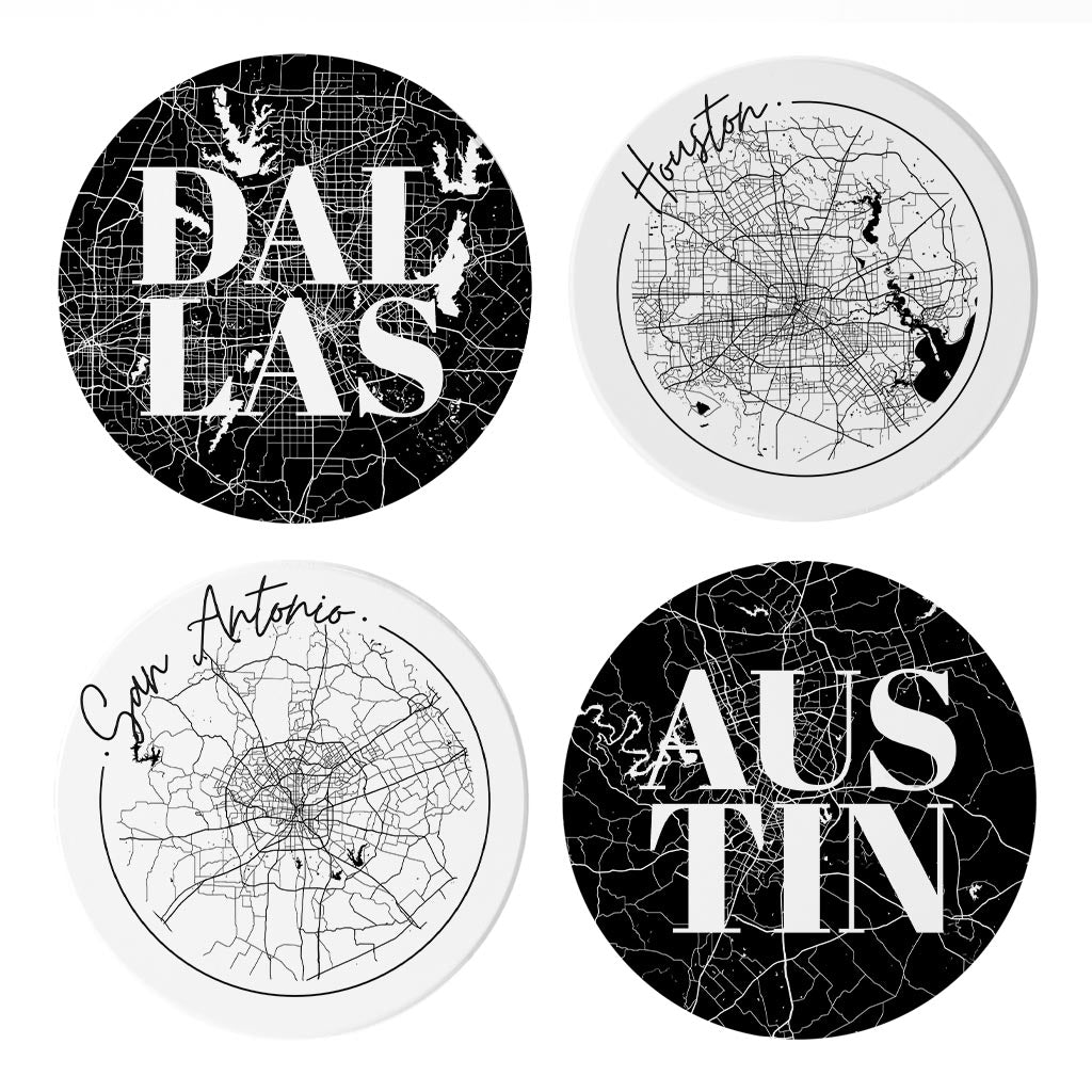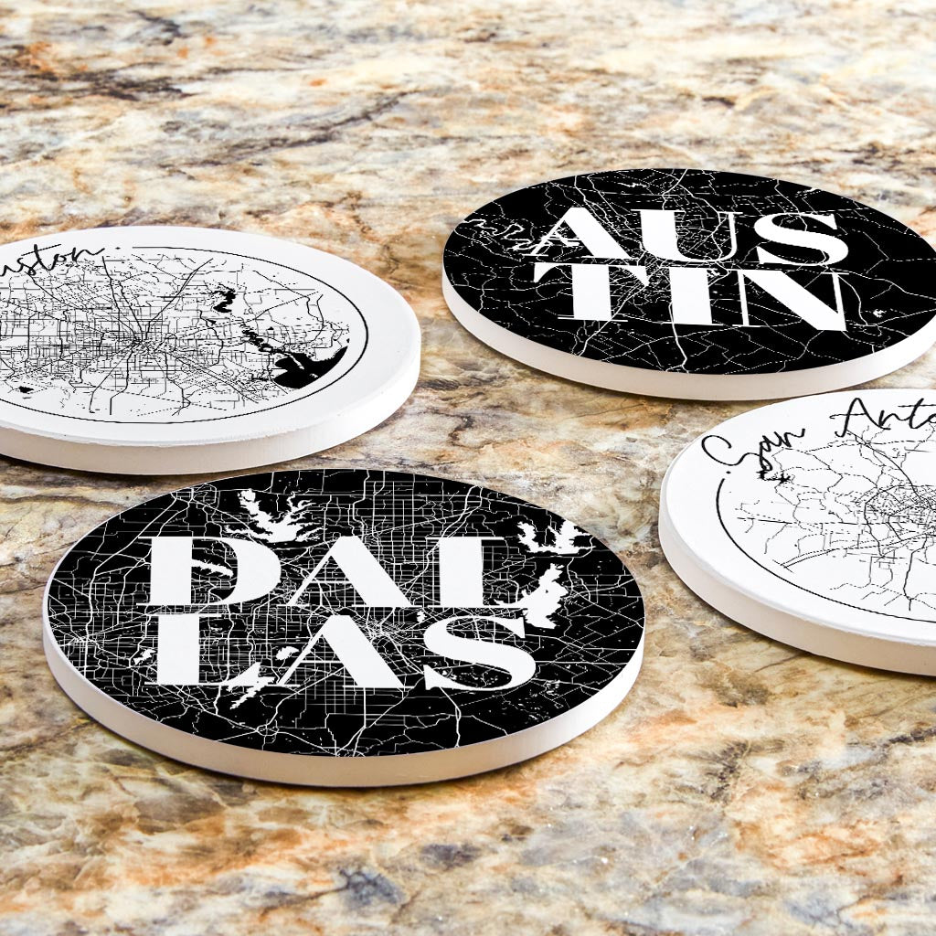 Modern Black White Texas Set | Absorbent Coasters | Set of 4 | Min 2