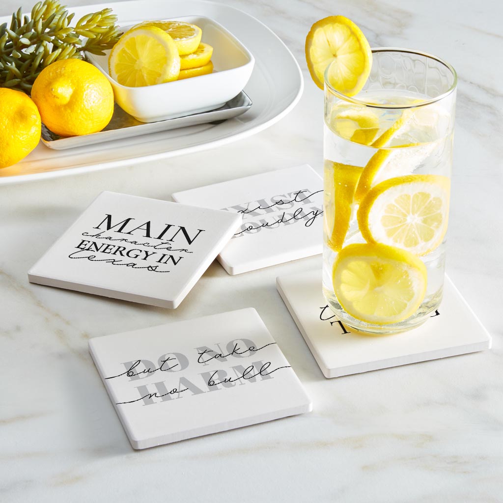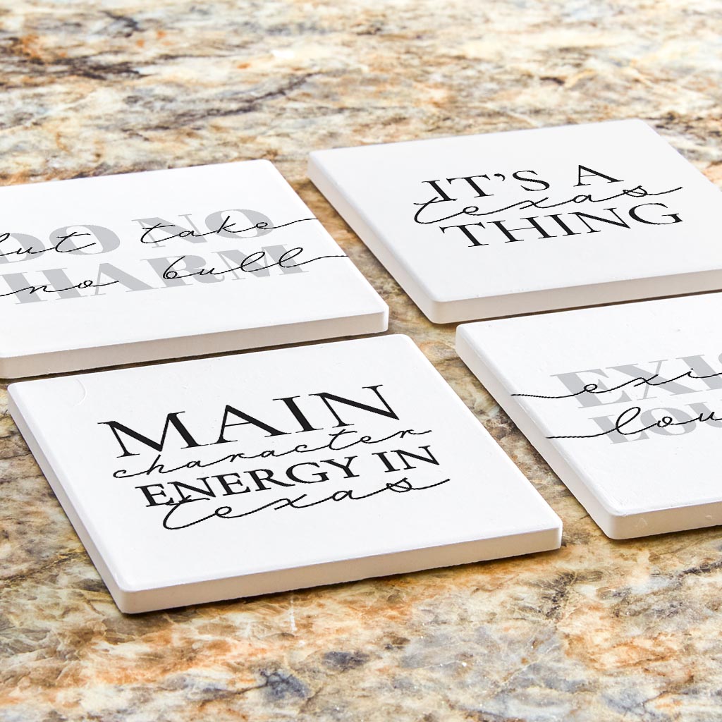 Modern Black White Texas Set | Absorbent Coasters | Set of 4 | Min 2