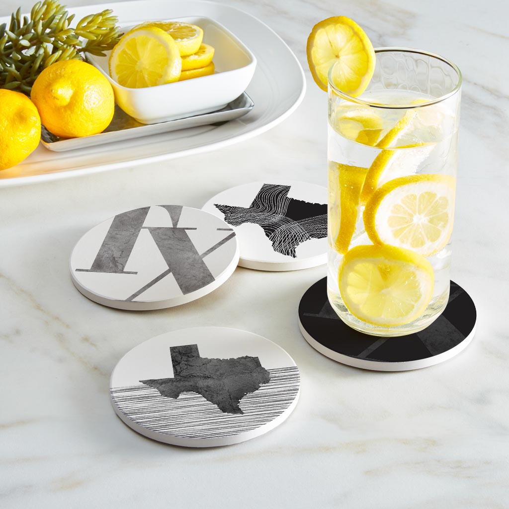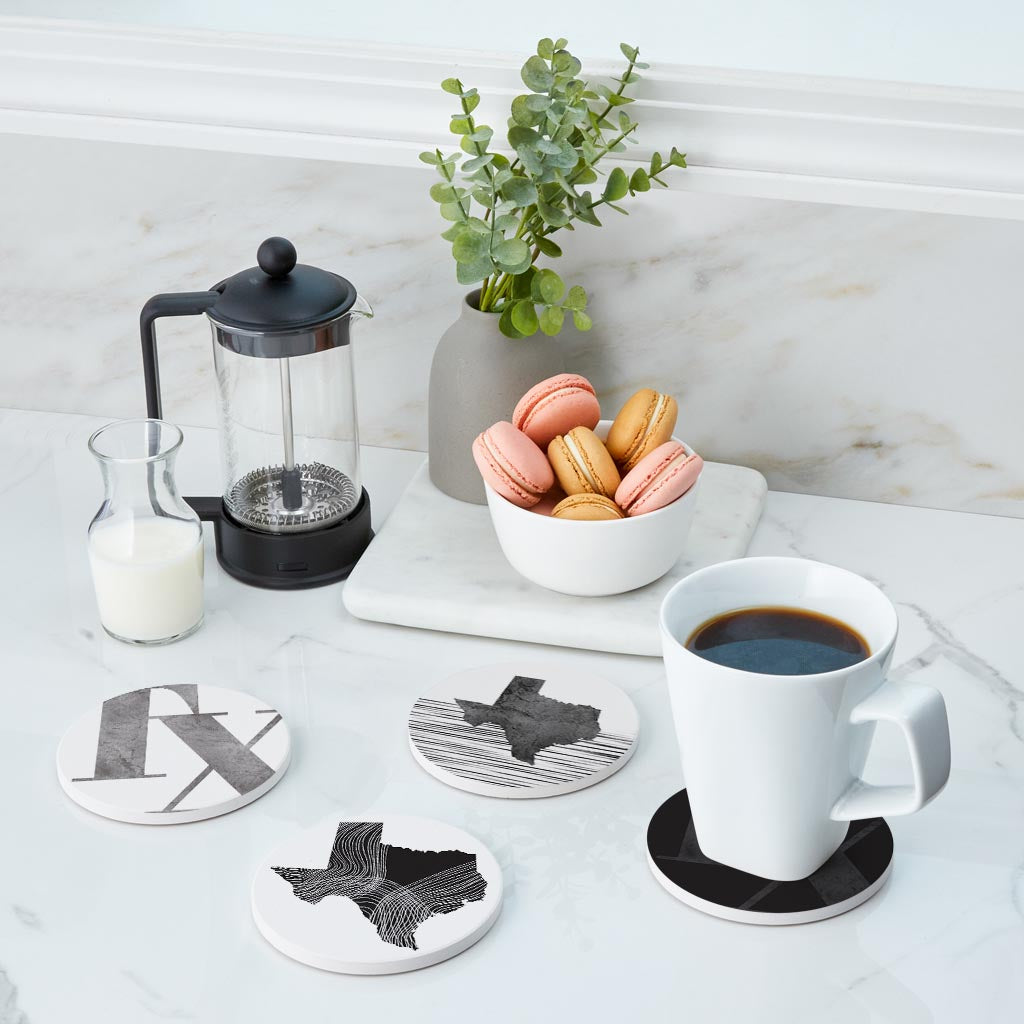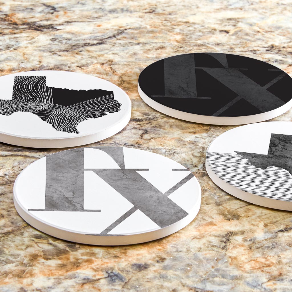 Modern Black White Texas Set | Absorbent Coasters | Set of 4 | Min 2