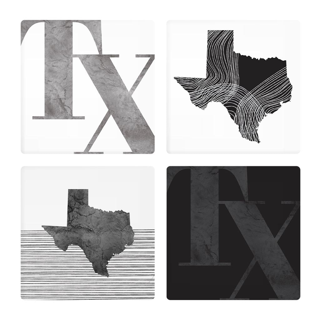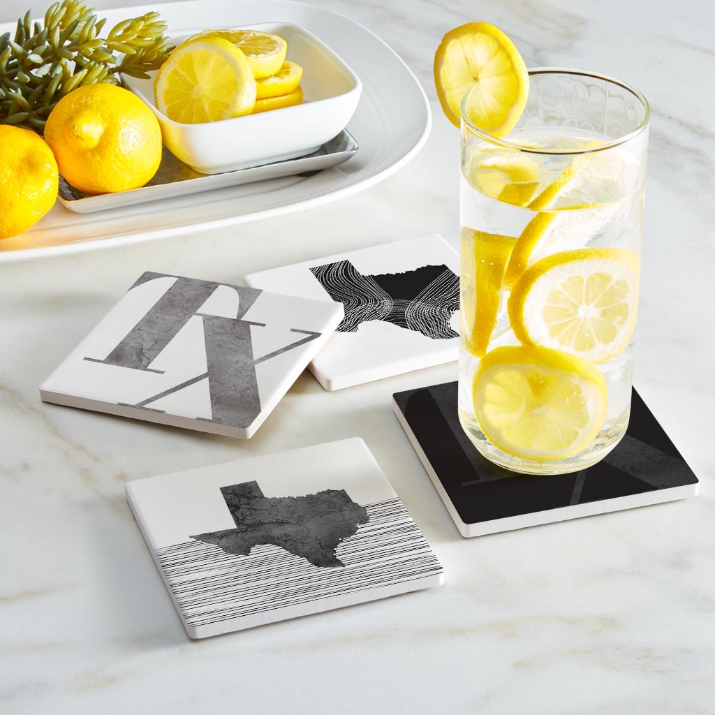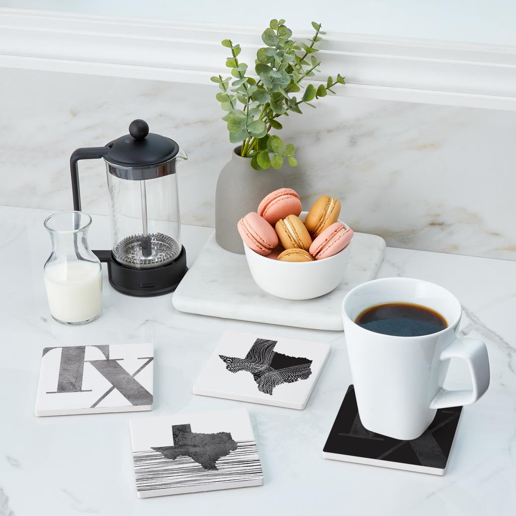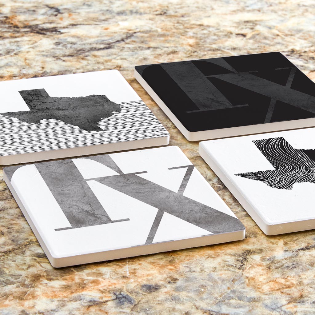 Modern Black White Texas Set | Absorbent Coasters | Set of 4 | Min 2
