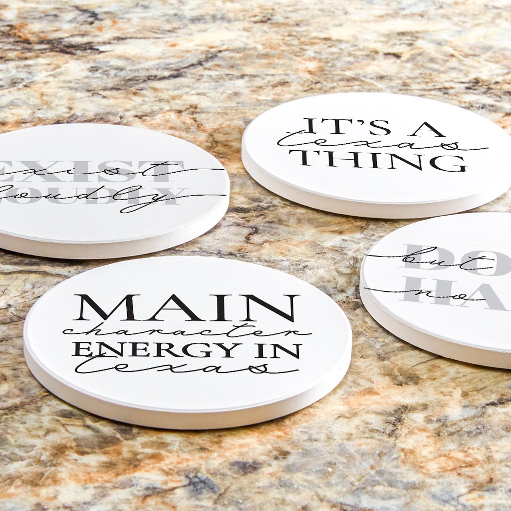 Modern Black White Texas Set | Absorbent Coasters | Set of 4 | Min 2