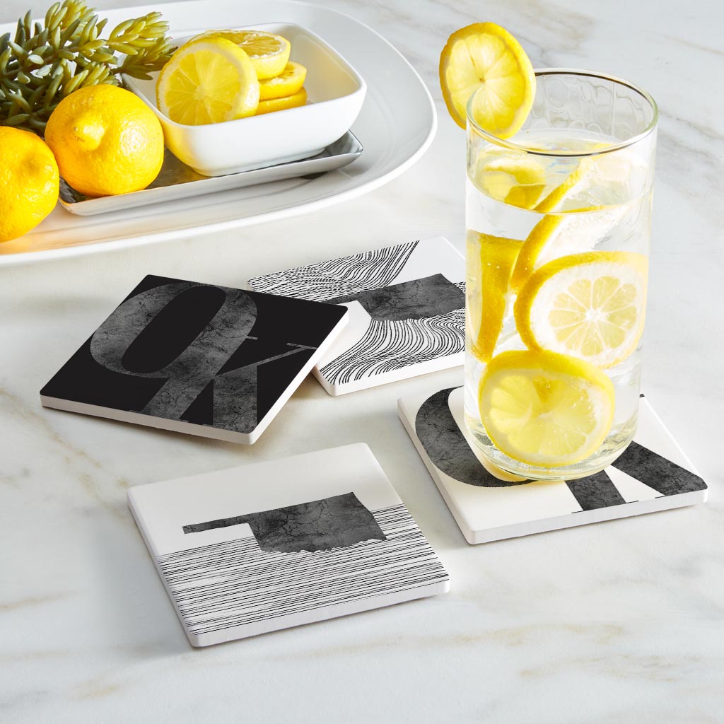 Modern Black Whiteoklahoma Set | Absorbent Coasters | Set of 4 | Min 2