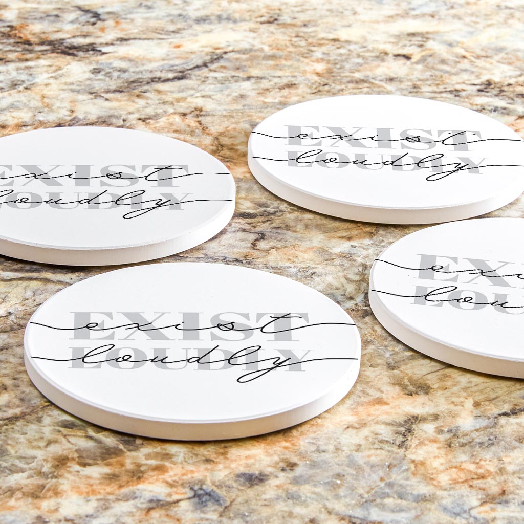 Modern Exist Loudly Texas| Absorbent Coasters | Set of 4 | Min 2