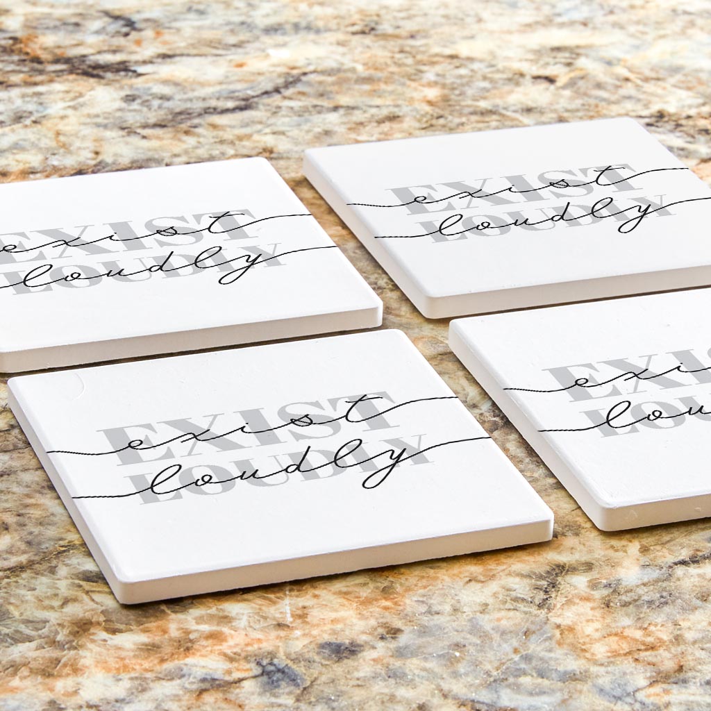 Modern Exist Loudly Texas | Absorbent Coasters | Set of 4 | Min 2