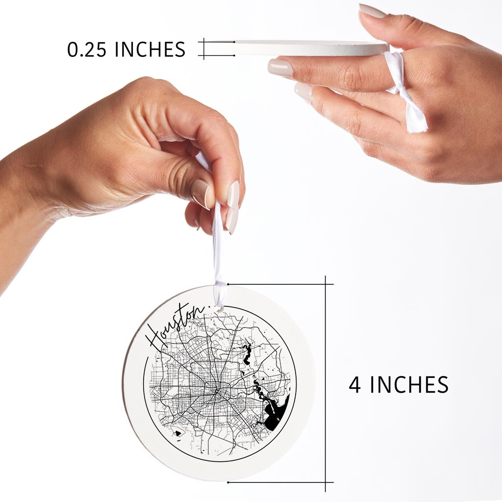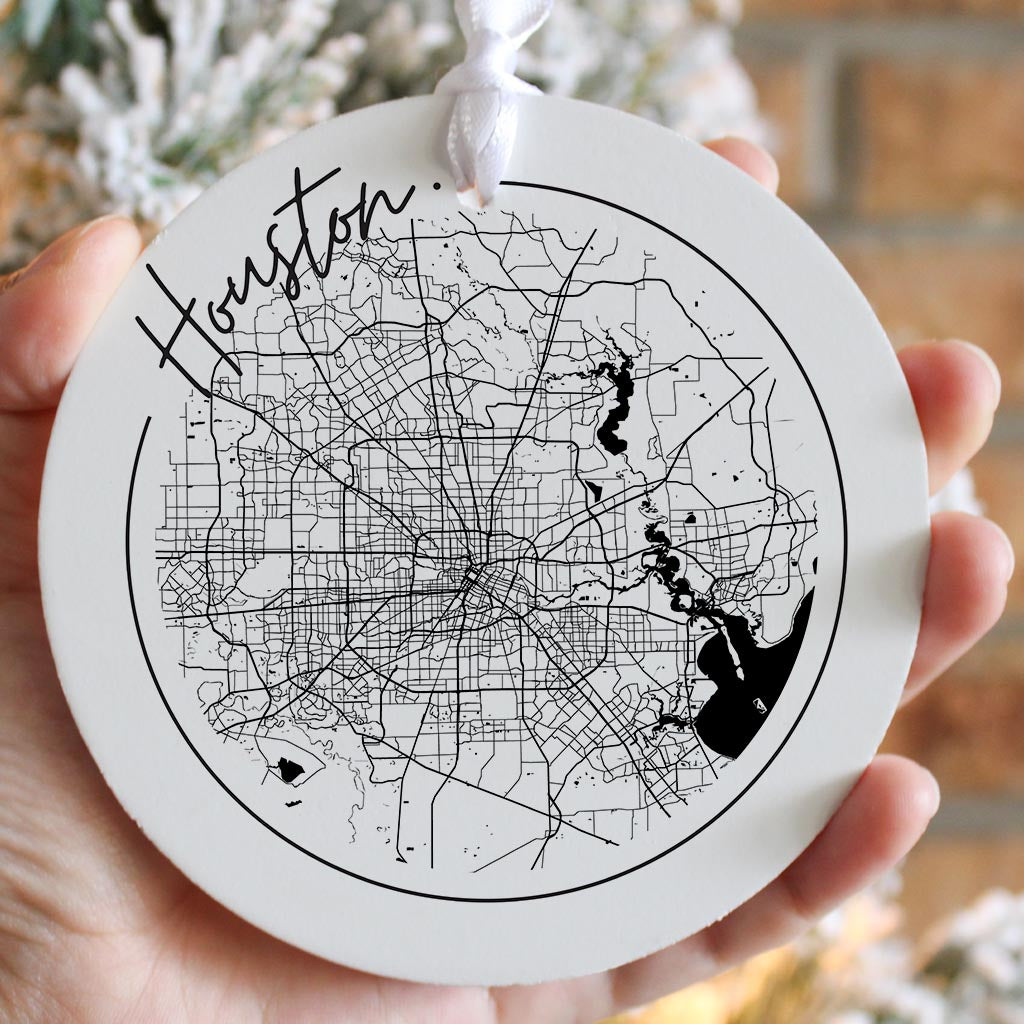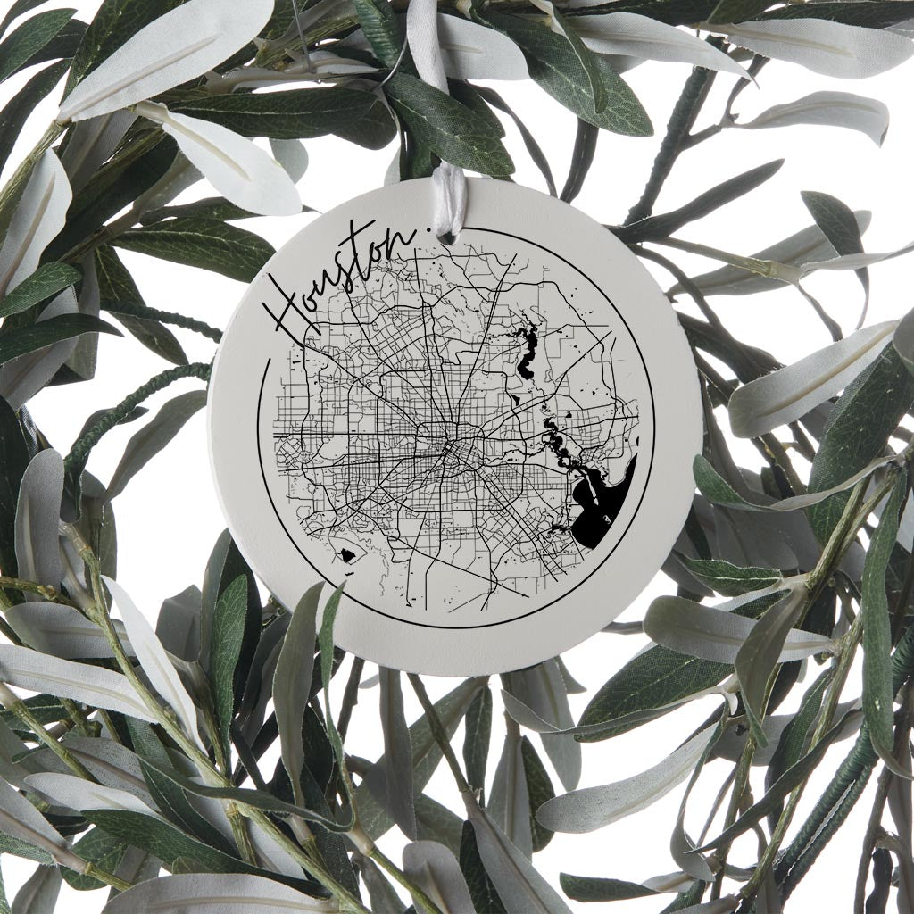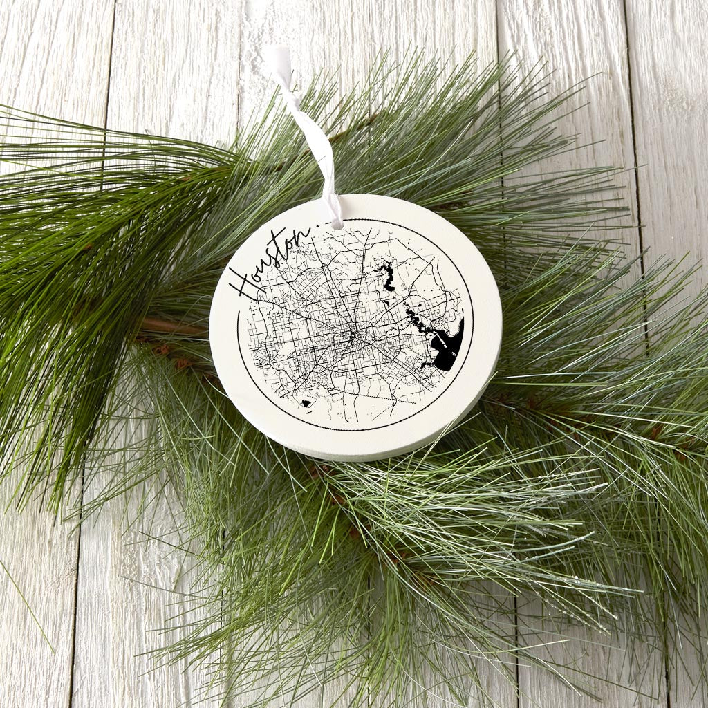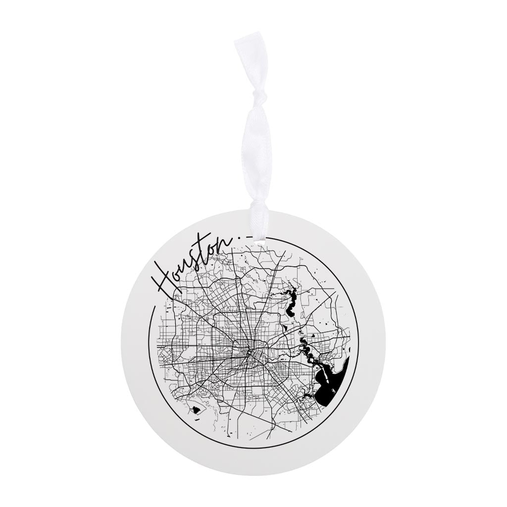 Modern Houston White Round Map | Wood Ornament | Eaches | Min 6