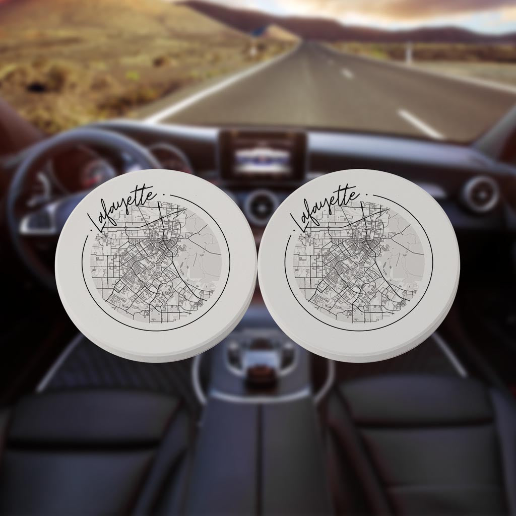 Modern Louisiana Lafayette Circle Map| Absorbent Car Coasters | Set of 2 | Min 4