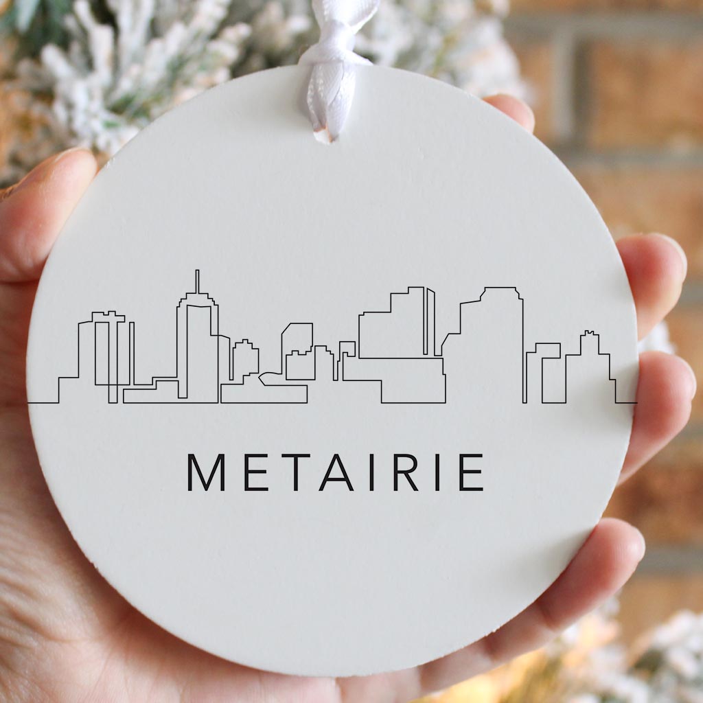 Modern Louisiana Metairie City Line Drawing| Wood Ornament | Eaches | Min 6