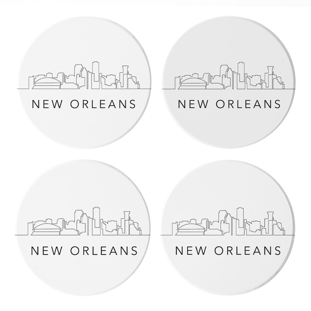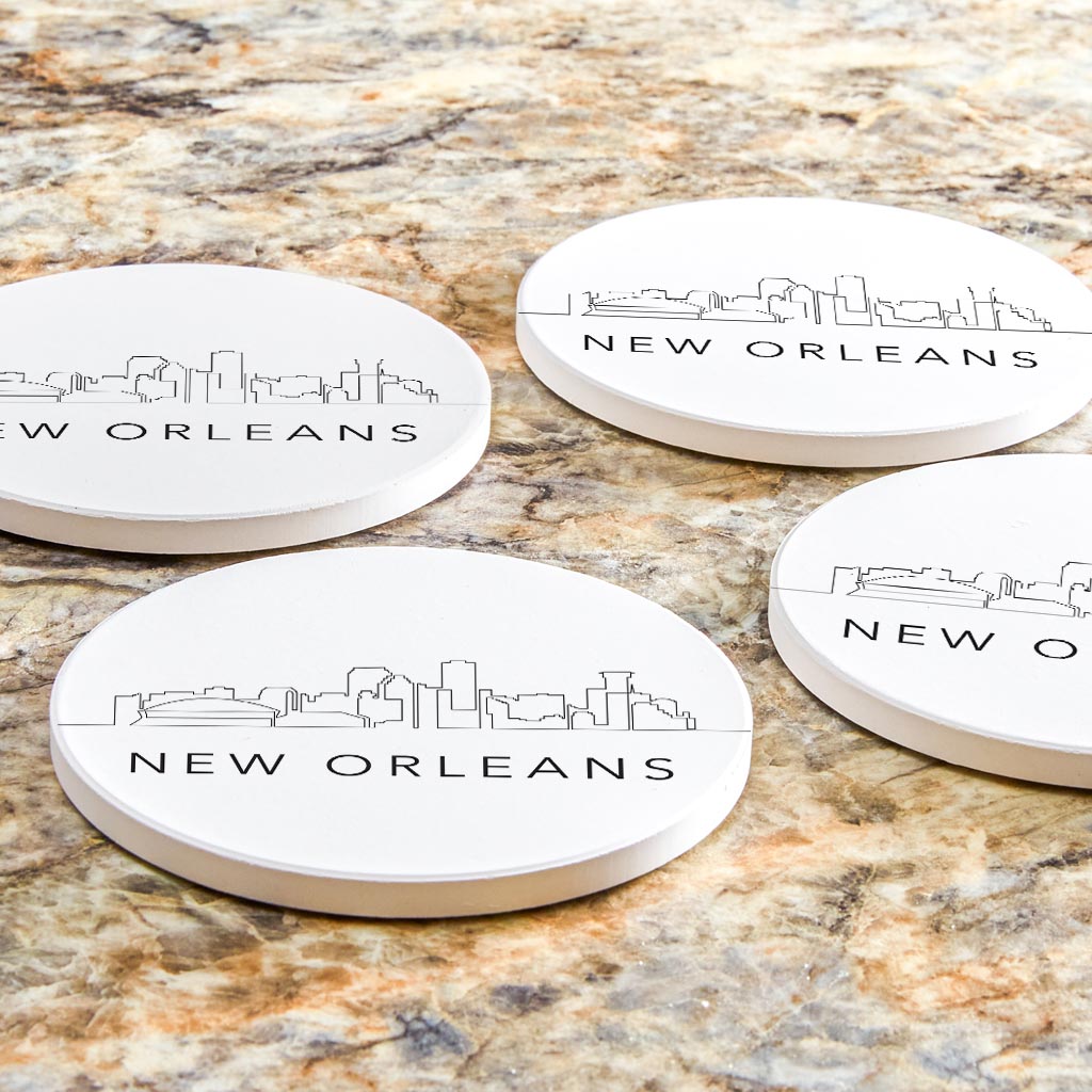 Modern Louisiana New Orleans City Line Drawing | Absorbent Coasters | Set of 4 | Min 2