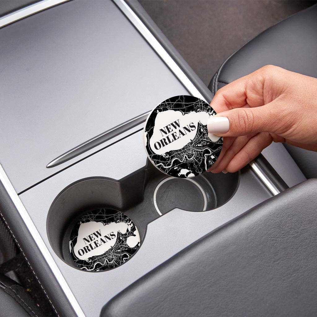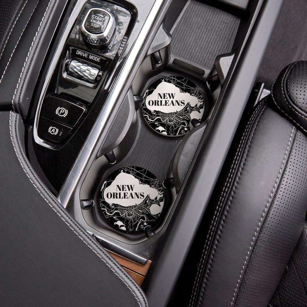 Modern Louisiana New Orleans Map | Absorbent Car Coasters | Set of 2 | Min 4