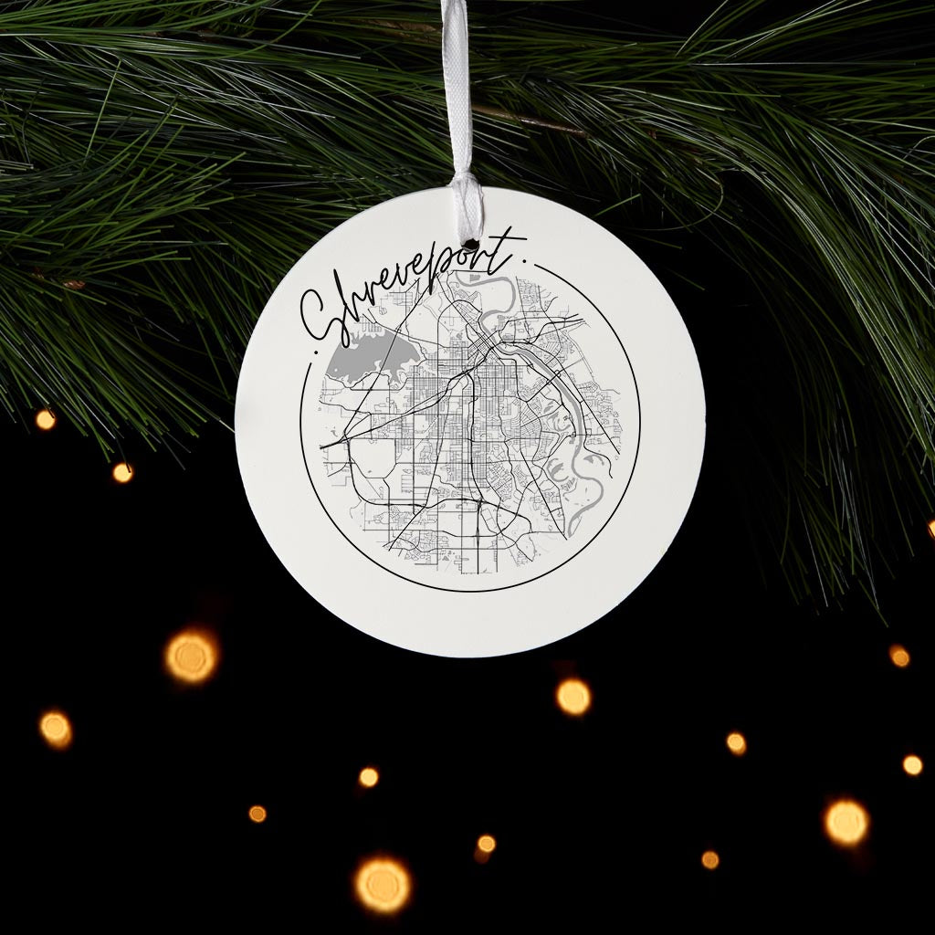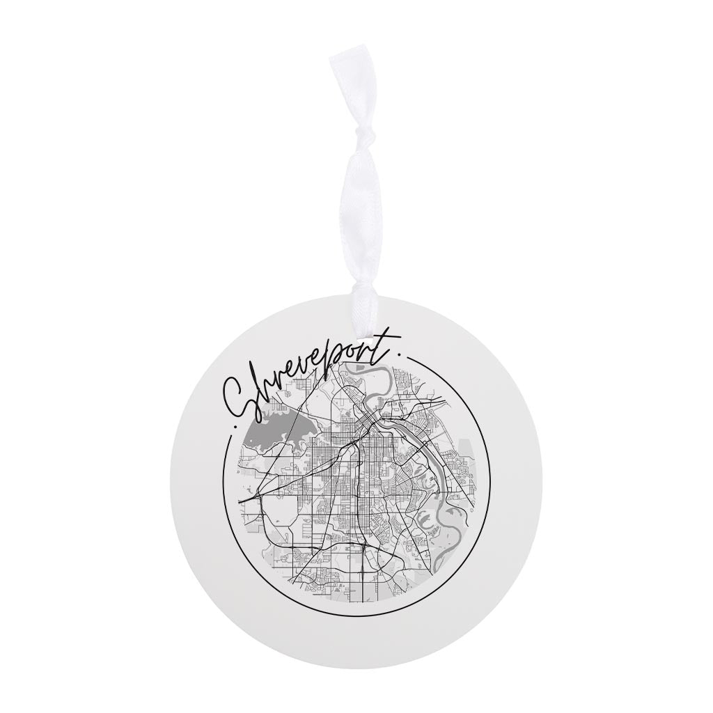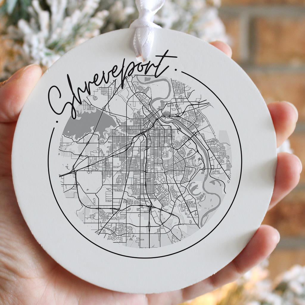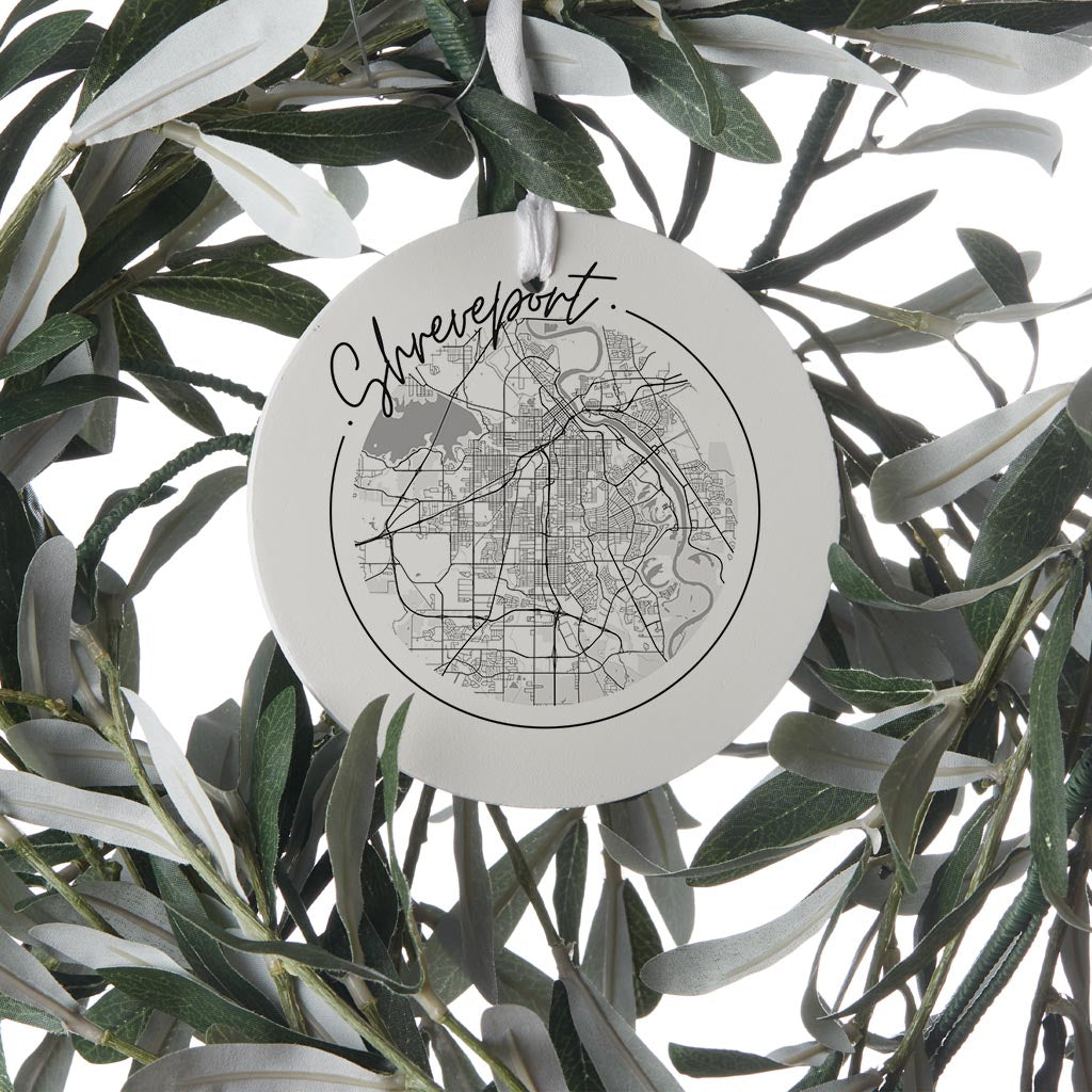 Modern Louisiana Shreveport Circle Map| Wood Ornament | Eaches | Min 6