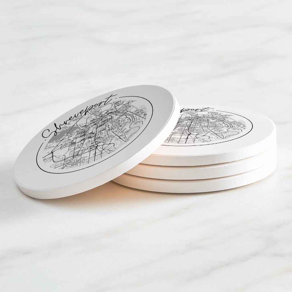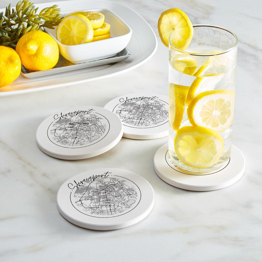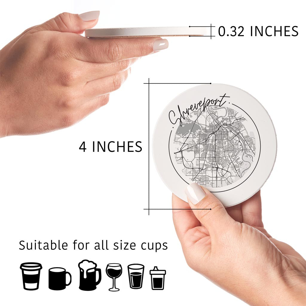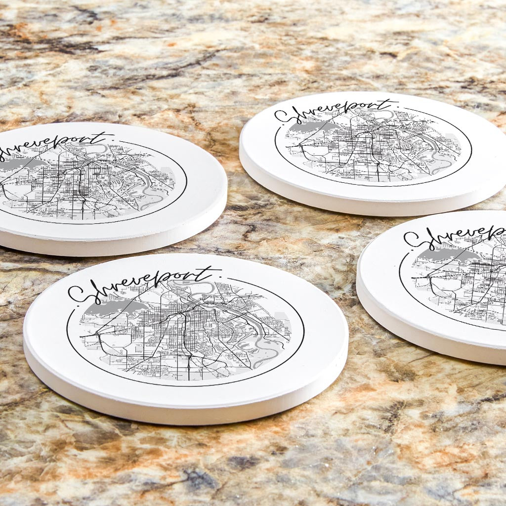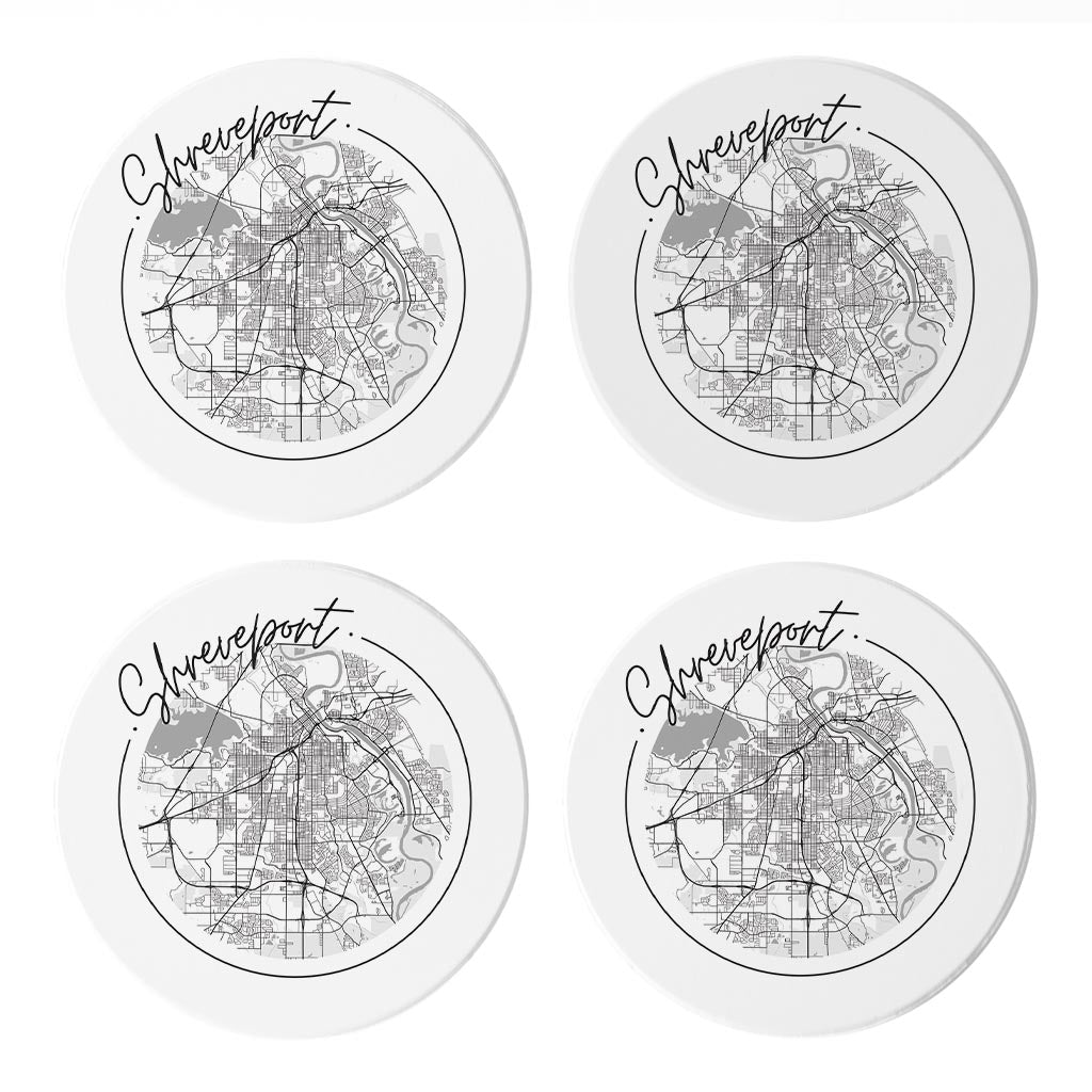 Modern Louisiana Shreveport Circle Map | Absorbent Coasters | Set of 4 | Min 2